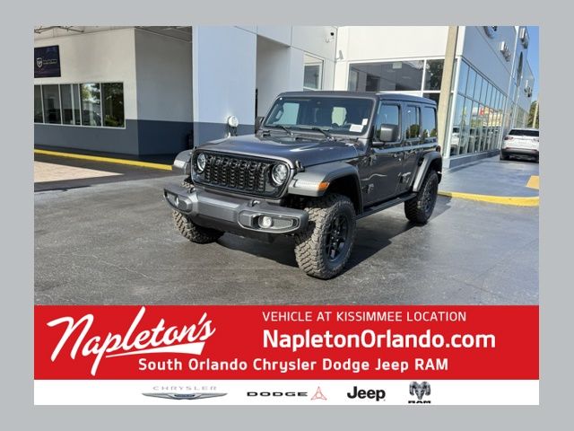 Engine: 3.6L V6 24V VVT Engine Upg I w/ESS, Transmission: 8-Speed Automatic Transmission, Exterior Color: Granite Crystal, Interior Color: Black,Stock #: SW631364, Model Code: JLJL74, Comments: Granite Crystal Metallic Clearcoat 2025 Jeep Wrangler 4D Sport Utility Willys 4WD 8-Speed Automatic 3.6L V6 24V VVT