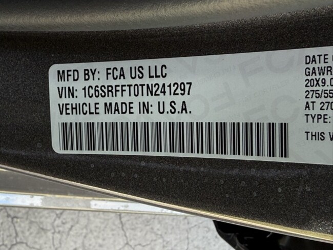 - VIN : 1C6SRFFT0TN241297