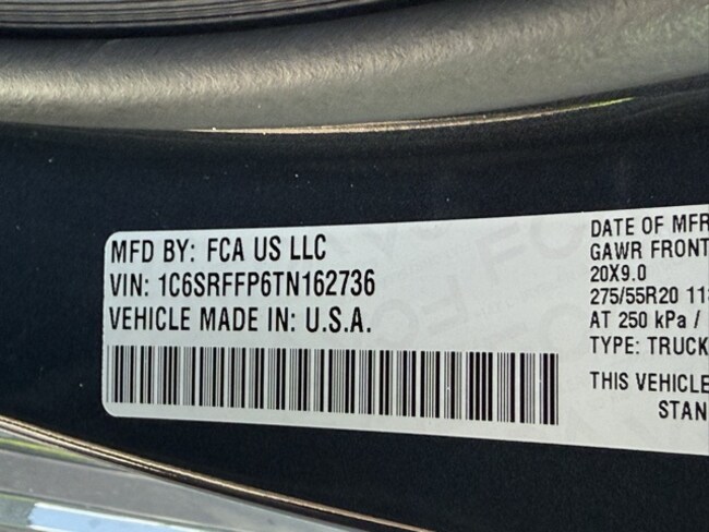 • VIN : 1C6SRFFP6TN162736