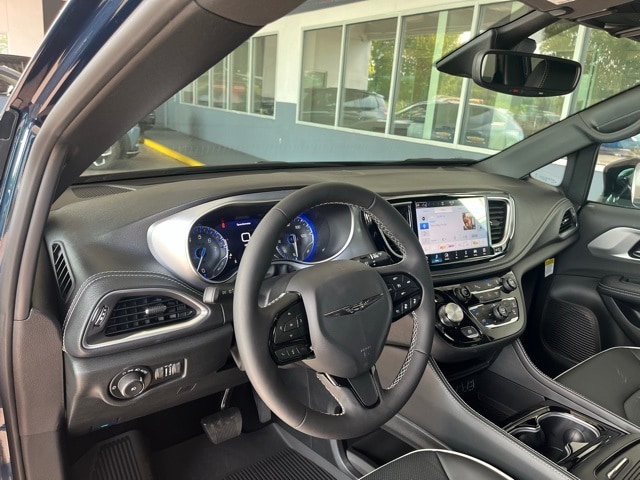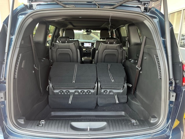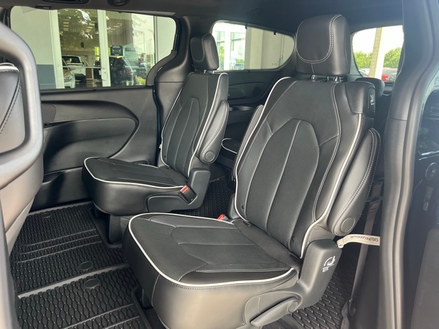 This Pacifica is well equipped with MOPAR Interior Protection Package C (All Weather Cargo Floor Mats, All Weather Floor Mats - Stow 'N Go, Bright Door Sills, Cargo Area Liner, and Rear Cargo Bin Stow 'N Go Storage), Quick Order Package 27P, 13 Speakers, 3.25 Axle Ratio, 3rd row seats: split-bench, 4-Wheel Disc Brakes, ABS brakes, Air Conditioning, Alloy wheels, AM/FM radio: SiriusXM 360L, Apple CarPlay/Android Auto, Audio memory, Auto-dimming Rear-View mirror, Automatic temperature control, Black Seats, Brake assist, Bumpers: body-color, Compass, Delay-off headlights, Driver door bin, Driver vanity mirror, Driver's Seat Mounted Armrest, Dual front impact airbags, Dual front side impact airbags, Electronic Stability Control, Emergency communication system: Chrysler Connect, Four wheel independent suspension, Front anti-roll bar, Front Bucket Seats, Front dual zone A/C, Front fog lights, Front reading lights, Fully automatic headlights, Garage door transmitter, Heated door mirrors, Heated front seats, Heated rear seats, Heated steering wheel, Illuminated entry, Integrated Active Noise Cancellation, Knee airbag, Low tire pressure warning, Manufacturer's Statement of Origin, Memory seat, Nappa Leather Bucket Seats w/S Logo, Navigation System, Occupant sensing airbag, Outside temperature display, Overhead airbag, Overhead console, Panic alarm, ParkView Rear Back-Up Camera, Passenger door bin, Passenger seat mounted armrest, Passenger vanity mirror, Power door mirrors, Power driver seat, Power Liftgate, Power moonroof, Power passenger seat, Power steering, Power windows, Radio data system, Radio: Uconnect 5 Nav w/10.1" Display, Rain sensing wipers, Rear air conditioning, Rear reading lights, Rear window defroster, Rear window wiper, Reclining 3rd row seat, Remote keyless entry, Roof rack, Security system, Speed control, Split folding rear seat, Spoiler, Steering wheel mounted audio controls, Tachometer, Telescoping steering wheel, Tilt steering wheel, Touring Suspension, Traction control, Trip computer, Turn signal indicator mirrors, Variably intermittent wipers, Ventilated front seats, Voltmeter, and Wheels: 20" x 7.5" S-Model Aluminum Design 1. Not all customers qualify for all rebates. See dealer for details. Price includes: $2000 - 2025 National Overaged Select Inventory Bonus Cash. Exp. 11/03/2025 $2000 - 2025 South BC Select Inventory Bonus Cash. Exp. 11/03/2025 $3500 - 2025 National Retail Bonus Cash . Exp. 11/03/2025