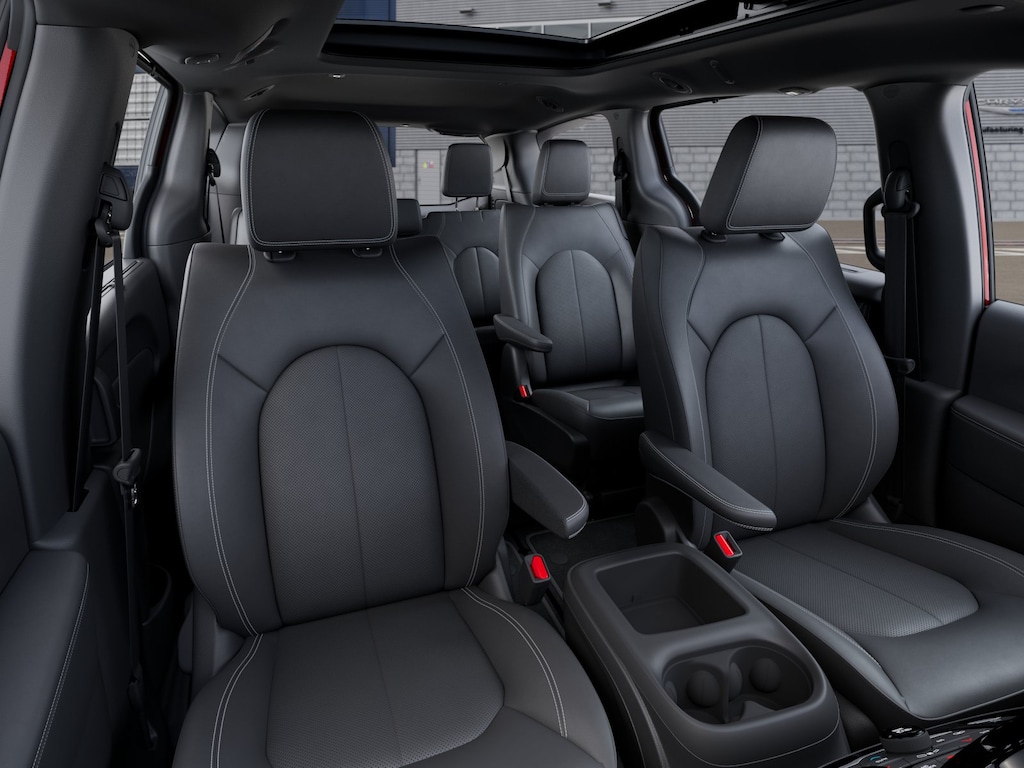 This Pacifica is well equipped with 100th Anniversary Buzz Model Package (100th Anniversary Buzz Model Graphic, Black Day Light Opening Moldings, Granite Crystal Exterior Accents, Granite Crystal Exterior Badging, Premium Fascia-Upper/Lower Grilles/Granite Crystal, Premium Rear Fascia Granite Crystal, and Wheels: 20" x 7.5" Luster Gray Aluminum), Quick Order Package 27L, Safety Sphere (360 Surround View Camera System and ParkSense Front/Rear Park Assist with Stop), 10.1" Touchscreen Display, 17" x 7.0" Aluminum Wheels, 3.25 Axle Ratio, 3rd row seats: split-bench, 4-Wheel Disc Brakes, 4G LTE Wi-Fi Hot Spot, 6 Speakers, 8-Passenger Seating, ABS brakes, Air Conditioning, Alloy wheels, AM/FM radio: SiriusXM, Apple CarPlay, Apple CarPlay/Android Auto, Auto-dimming Rear-View mirror, Automatic temperature control, Black Seats, Brake assist, Bumpers: body-color, Caprice Leatherette Bucket Seats, Compass, Connectivity - US/Canada, Delay-off headlights, Disassociated Touchscreen Display, Driver door bin, Driver vanity mirror, Driver's Seat Mounted Armrest, Dual front impact airbags, Dual front side impact airbags, Electronic Stability Control, Emergency communication system: Chrysler Connect, For Details, Visit DriveUconnect.com, Four wheel independent suspension, Front anti-roll bar, Front Bucket Seats, Front dual zone A/C, Front fog lights, Front reading lights, Fully automatic headlights, Garage door transmitter, Google Android Auto, GPS Antenna Input, Heated door mirrors, Heated front seats, Heated steering wheel, Illuminated entry, Integrated Active Noise Cancellation, Integrated Center Stack Radio, Knee airbag, Low tire pressure warning, Memory seat, MOPAR Paint Protection Film, MyFlexCare Service Plan, Occupant sensing airbag, Outside temperature display, Overhead airbag, Overhead console, Panic alarm, ParkView Rear Back-Up Camera, Passenger door bin, Passenger seat mounted armrest, Passenger vanity mirror, Power door mirrors, Power driver seat, Power Front/Fixed Rear Full Sunroof, Power Liftgate, Power Open/Close Shade, Power steering, Power windows, Radio data system, Radio: Uconnect 5 with 10.1" Display, Rain sensing wipers, Rear air conditioning, Rear reading lights, Rear window defroster, Rear window wiper, Reclining 3rd row seat, Remote keyless entry, Security system, Speed control, Split folding rear seat, Spoiler, Steering wheel mounted audio controls, Tachometer, Telescoping steering wheel, Tilt steering wheel, Touring Suspension, Traction control, Trip computer, Turn signal indicator mirrors, USB Host Flip, Variably intermittent wipers, and Voltmeter. Not all customers qualify for all rebates. See dealer for details. Price includes: $2750 - 2026 National Retail Bonus Cash . Exp. 01/05/2026 $500 - 2026 South BC Retail Bonus Cash . Exp. 01/05/2026 $750 - 2026 National Bonus Cash . Exp. 01/05/2026