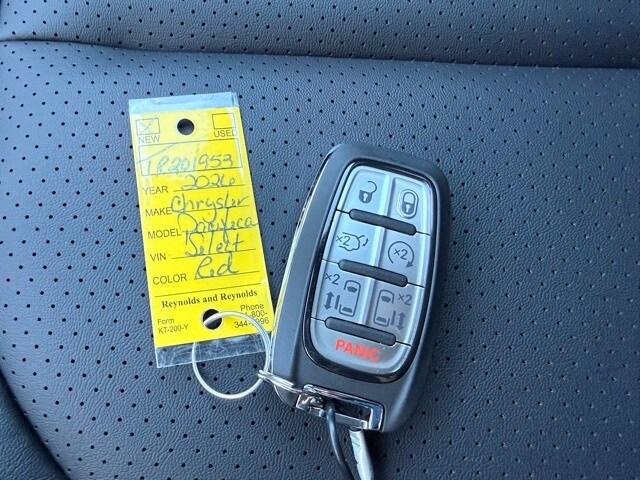 This Pacifica is well equipped with 100th Anniversary Buzz Model Package (100th Anniversary Buzz Model Graphic, Black Day Light Opening Moldings, Granite Crystal Exterior Accents, Granite Crystal Exterior Badging, Premium Fascia-Upper/Lower Grilles/Granite Crystal, Premium Rear Fascia Granite Crystal, and Wheels: 20" x 7.5" Luster Gray Aluminum), Quick Order Package 27L, Safety Sphere (360 Surround View Camera System and ParkSense Front/Rear Park Assist with Stop), 10.1" Touchscreen Display, 17" x 7.0" Aluminum Wheels, 3.25 Axle Ratio, 3rd row seats: split-bench, 4-Wheel Disc Brakes, 4G LTE Wi-Fi Hot Spot, 6 Speakers, 8-Passenger Seating, ABS brakes, Air Conditioning, Alloy wheels, AM/FM radio: SiriusXM, Apple CarPlay, Apple CarPlay/Android Auto, Auto-dimming Rear-View mirror, Automatic temperature control, Black Seats, Brake assist, Bumpers: body-color, Caprice Leatherette Bucket Seats, Compass, Connectivity - US/Canada, Delay-off headlights, Disassociated Touchscreen Display, Driver door bin, Driver vanity mirror, Driver's Seat Mounted Armrest, Dual front impact airbags, Dual front side impact airbags, Electronic Stability Control, Emergency communication system: Chrysler Connect, For Details, Visit DriveUconnect.com, Four wheel independent suspension, Front anti-roll bar, Front Bucket Seats, Front dual zone A/C, Front fog lights, Front reading lights, Fully automatic headlights, Garage door transmitter, Google Android Auto, GPS Antenna Input, Heated door mirrors, Heated front seats, Heated steering wheel, Illuminated entry, Integrated Active Noise Cancellation, Integrated Center Stack Radio, Knee airbag, Low tire pressure warning, Memory seat, MOPAR Paint Protection Film, MyFlexCare Service Plan, Occupant sensing airbag, Outside temperature display, Overhead airbag, Overhead console, Panic alarm, ParkView Rear Back-Up Camera, Passenger door bin, Passenger seat mounted armrest, Passenger vanity mirror, Power door mirrors, Power driver seat, Power Liftgate, Power steering, Power windows, Radio data system, Radio: Uconnect 5 with 10.1" Display, Rain sensing wipers, Rear air conditioning, Rear reading lights, Rear window defroster, Rear window wiper, Reclining 3rd row seat, Remote keyless entry, Security system, Speed control, Split folding rear seat, Spoiler, Steering wheel mounted audio controls, Tachometer, Telescoping steering wheel, Tilt steering wheel, Touring Suspension, Traction control, Trip computer, Turn signal indicator mirrors, USB Host Flip, Variably intermittent wipers, and Voltmeter. Not all customers qualify for all rebates. See dealer for details. Price includes: $3500 - 2026 National Retail Bonus Cash . Exp. 03/02/2026 $500 - 2026 Southeast BC Retail Bonus Cash. Exp. 03/02/2026