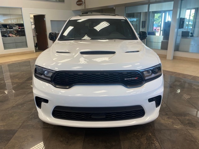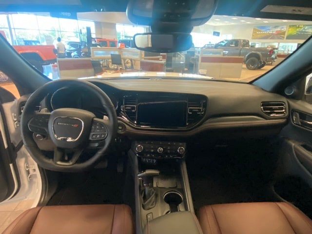 This Durango is well equipped with Blacktop Package (Black Roof Rails, Gloss Black Badges, Gloss Black Exterior Mirrors, Integrated Roof Rail Crossbars, Satin Black Dodge Tail Lamp Badge, and Wheels: 20" x 8.0" Black Noise Aluminum), Quick Order Package 22T R/T Plus (115V Auxiliary Power Outlet, 7 & 4 Pin Wiring Harness, Adaptive Cruise Control w/Stop, Auto High Beam Headlamp Control, Auto-Dimming Exterior Driver Mirror, Blind Spot w/Trailer Detection, Class IV Receiver Hitch, Dual Remote USB Port - Charge Only, Exterior Mirrors w/Heating Element, Exterior Mirrors w/Memory, Exterior Mirrors w/Supplemental Signals, Floor Console w/Leather Armrest, Full Speed Forward Collision Warning Plus, Heated Second Row Seats, Leather Trimmed Bucket Seats, Leather Wrapped Door Panels, LED Auxiliary Low Beam & Turn Signal, Power 6x9 Multi-Function Foldaway Mirrors, Power 8-Way Driver Memory 8-Way Passenger Seats, Power Driver/Passenger 4-Way Lumbar Adjust, Power Sunroof, Power Tilt & Telescopic Steering Column, Radio/Driver Seat/Mirrors Memory, Red Accent Stitching, Trailer Brake Control, and Ventilated Front Seats), 2nd Row Fold/Tumble Captain Chairs, 2nd Row Mini Console w/Cupholders, 2nd Row Seat Mounted Inboard Armrests, 3.09 Rear Axle Ratio, 3rd Row Floor Mat & Mini Console, 3rd row seats: split-bench, 4-Wheel Disc Brakes, 6-Passenger Seating, 9 Speakers, ABS brakes, Air Conditioning, Alloy wheels, AM/FM radio: SiriusXM w/360L, Apple CarPlay/Android Auto, Auto-dimming Rear-View mirror, Auto-leveling suspension, Automatic temperature control, Brake assist, Bumpers: body-color, Cloth Bucket Seats w/Shift Insert, Compass, Delay-off headlights, Driver door bin, Driver vanity mirror, Dual front impact airbags, Dual front side impact airbags, Electronic Stability Control, Emergency communication system: Dodge Connect, Four wheel independent suspension, Front anti-roll bar, Front Bucket Seats, Front Center Armrest w/Storage, Front dual zone A/C, Front reading lights, Fully automatic headlights, Garage door transmitter, Heated door mirrors, Heated front seats, Heated steering wheel, Illuminated entry, Knee airbag, Leather steering wheel, Low tire pressure warning, Navigation System, Occupant sensing airbag, Outside temperature display, Overhead airbag, Overhead console, Panic alarm, ParkView Rear Back-Up Camera, Passenger door bin, Passenger vanity mirror, Power door mirrors, Power driver seat, Power Liftgate, Power steering, Power windows, Radio data system, Radio: Uconnect 5 Nav w/10.1" Display, Rain sensing wipers, Rear air conditioning, Rear anti-roll bar, Rear Load Leveling Suspension, Rear reading lights, Rear seat center armrest, Rear window defroster, Rear window wiper, Remote keyless entry, Security system, Speed control, Speed-sensing steering, Speed-Sensitive Wipers, Split folding rear seat, Spoiler, Sport steering wheel, Steering wheel mounted audio controls, Tachometer, Telescoping steering wheel, Tilt steering wheel, Traction control, Trip computer, Variably intermittent wipers, Voltmeter, and Wheels: 20" x 8.0" Fine Silver. Not all customers qualify for all rebates. See dealer for details. Price includes: $2000 - 2025 National Overaged Select Inventory Bonus Cash. Exp. 11/03/2025 $2250 - 2025 National Retail Bonus Cash . Exp. 11/03/2025