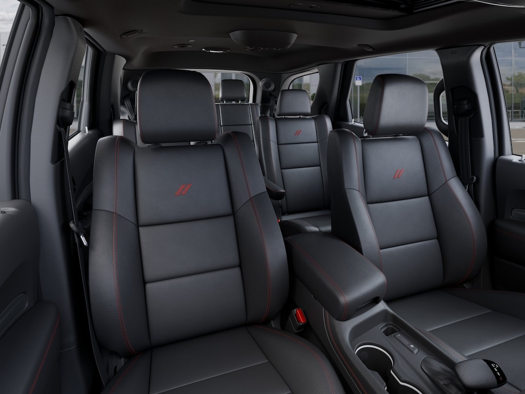 This Durango is well equipped with Blacktop Package (Black Roof Rails, Gloss Black Badges, Gloss Black Exterior Mirrors, Integrated Roof Rail Crossbars, Satin Black Dodge Tail Lamp Badge, and Wheels: 20" x 8.0" Black Noise Aluminum), Quick Order Package 22T R/T Plus (115V Auxiliary Power Outlet, 7 & 4 Pin Wiring Harness, Adaptive Cruise Control w/Stop, Auto High Beam Headlamp Control, Auto-Dimming Exterior Driver Mirror, Blind Spot w/Trailer Detection, Class IV Receiver Hitch, Dual Remote USB Port - Charge Only, Exterior Mirrors w/Heating Element, Exterior Mirrors w/Memory, Exterior Mirrors w/Supplemental Signals, Floor Console w/Leather Armrest, Full Speed Forward Collision Warning Plus, Heated Second Row Seats, Leather Trimmed Bucket Seats, Leather Wrapped Door Panels, LED Auxiliary Low Beam & Turn Signal, Power 6x9 Multi-Function Foldaway Mirrors, Power 8-Way Driver Memory 8-Way Passenger Seats, Power Driver/Passenger 4-Way Lumbar Adjust, Power Sunroof, Power Tilt & Telescopic Steering Column, Radio/Driver Seat/Mirrors Memory, Red Accent Stitching, Trailer Brake Control, and Ventilated Front Seats), 2nd Row Fold/Tumble Captain Chairs, 2nd Row Mini Console w/Cupholders, 2nd Row Seat Mounted Inboard Armrests, 3.09 Rear Axle Ratio, 3rd Row Floor Mat & Mini Console, 3rd row seats: split-bench, 4-Wheel Disc Brakes, 6-Passenger Seating, 9 Speakers, ABS brakes, Air Conditioning, Alloy wheels, AM/FM radio: SiriusXM w/360L, Apple CarPlay/Android Auto, Auto-dimming Rear-View mirror, Auto-leveling suspension, Automatic temperature control, Brake assist, Bumpers: body-color, Cloth Bucket Seats w/Shift Insert, Compass, Delay-off headlights, Driver door bin, Driver vanity mirror, Dual front impact airbags, Dual front side impact airbags, Electronic Stability Control, Emergency communication system: Dodge Connect, Four wheel independent suspension, Front anti-roll bar, Front Bucket Seats, Front Center Armrest w/Storage, Front dual zone A/C, Front reading lights, Fully automatic headlights, Garage door transmitter, Heated door mirrors, Heated front seats, Heated steering wheel, Illuminated entry, Knee airbag, Leather steering wheel, Low tire pressure warning, Navigation System, Occupant sensing airbag, Outside temperature display, Overhead airbag, Overhead console, Panic alarm, ParkView Rear Back-Up Camera, Passenger door bin, Passenger vanity mirror, Power door mirrors, Power driver seat, Power Liftgate, Power steering, Power windows, Radio data system, Radio: Uconnect 5 Nav w/10.1" Display, Rain sensing wipers, Rear air conditioning, Rear anti-roll bar, Rear Load Leveling Suspension, Rear reading lights, Rear seat center armrest, Rear window defroster, Rear window wiper, Remote keyless entry, Security system, Speed control, Speed-sensing steering, Speed-Sensitive Wipers, Split folding rear seat, Spoiler, Sport steering wheel, Steering wheel mounted audio controls, Tachometer, Telescoping steering wheel, Tilt steering wheel, Traction control, Trip computer, Variably intermittent wipers, Voltmeter, and Wheels: 20" x 8.0" Fine Silver. Not all customers qualify for all rebates. See dealer for details. Price includes: $2000 - 2025 National Holiday Select Inventory Bonus Cash. Exp. 12/01/2025 $2250 - 2025 National Retail Bonus Cash . Exp. 12/01/2025