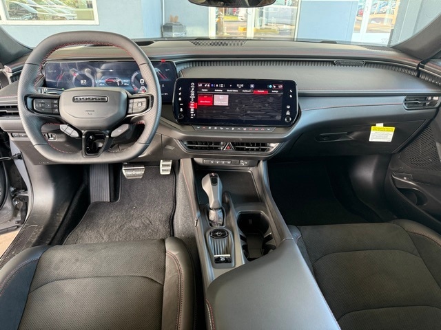 This Charger is well equipped with Quick Order Package 25S Scat Pack, Track Package (Adaptive Damping, Black 1-Piece Performance Spoiler, Brake Calipers - Red, Drive Experience Recorder, Drive Experience Recorder Prep, Heated Front Seats, Heated Second Row Seats, High Back Bucket Seats, High Performance Seat Trim Outline, Leatherette/Suede Performance Seats, Power 4-Way Driver Lumbar Adjust, Power 4-Way Passenger Lumbar Adjust, Power Adjust 12-Way Driver Seat, Power Adjust 12-Way Front Passenger Seat, Radio and Driver Seat Memory, Ultra High Performance Brakes, Ventilated Front Seats, Wheels: 20" x 11" Tront/20" x 11.5" Rear Aluminum, and Widebody Competition Suspension), 10 Speakers, 4-Wheel Disc Brakes, ABS brakes, Air Conditioning, Alloy wheels, AM/FM radio: SiriusXM w/360L, Apple CarPlay/Android Auto, Auto-dimming Rear-View mirror, Automatic temperature control, Black Seats, Brake assist, Bumpers: body-color, Compass, Delay-off headlights, Driver door bin, Driver vanity mirror, Dual front impact airbags, Dual front side impact airbags, Electronic Stability Control, Emergency communication system: Dodge Connect, Four wheel independent suspension, Front anti-roll bar, Front Bucket Seats, Front Center Armrest, Front dual zone A/C, Front reading lights, Fully automatic headlights, Garage door transmitter, Heads-Up Display, Heated door mirrors, Heated Exterior Mirrors, Heated front seats, Heated steering wheel, Illuminated entry, Knee airbag, Leather Shift Knob, Leatherette/Cloth Performance Seats, Low tire pressure warning, Manufacturer's Statement of Origin, Navigation System, Occupant sensing airbag, Outside temperature display, Overhead airbag, Overhead console, Panic alarm, ParkView Rear Back-Up Camera, Passenger door bin, Passenger vanity mirror, Power Adjust Mirrors, Power door mirrors, Power driver seat, Power steering, Power windows, Radio data system, Radio: Uconnect 5 Navigation with 12.3" Display, Rear anti-roll bar, Rear reading lights, Rear seat center armrest, Rear window defroster, Remote keyless entry, Security system, Speed control, Split folding rear seat, Sport steering wheel, Steering wheel mounted audio controls, Telescoping steering wheel, Tilt steering wheel, Traction control, Trip computer, Variably intermittent wipers, and Wheels: 20" x 11" Aluminum.