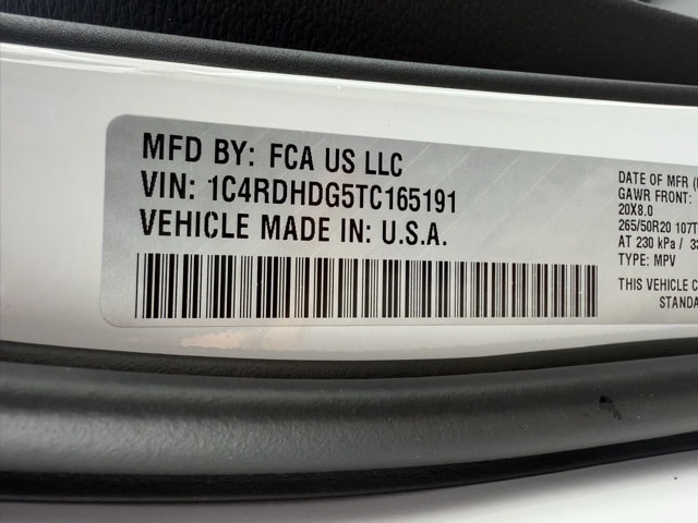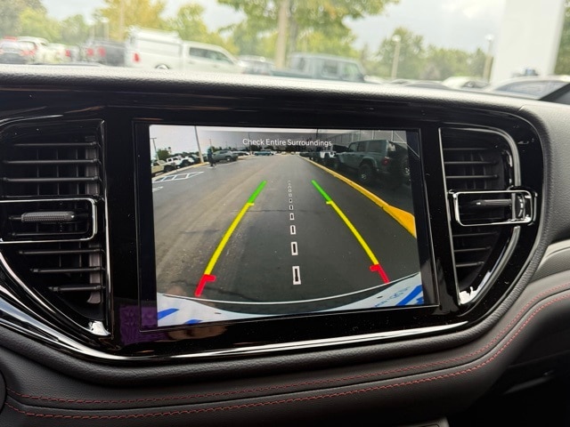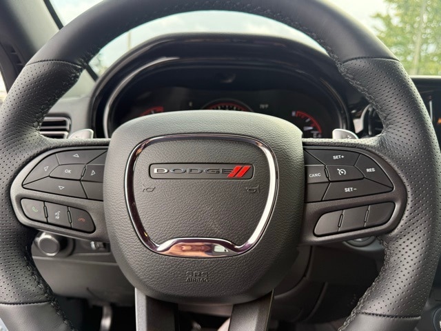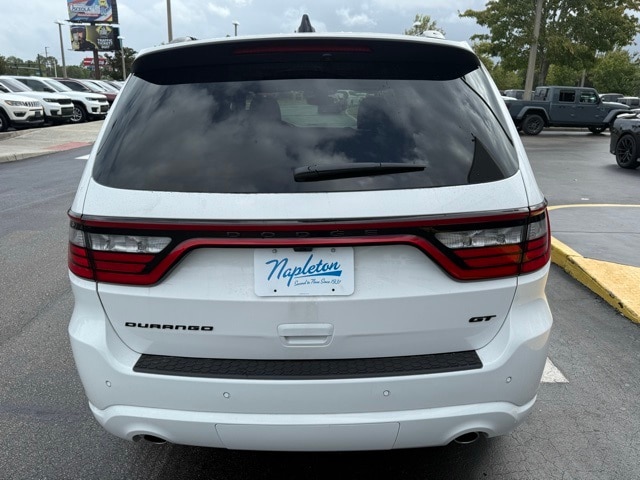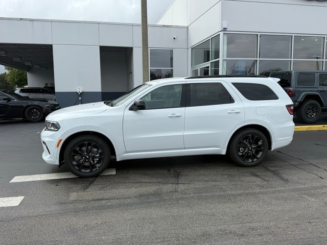 This Durango is well equipped with Blacktop Package (Black Roof Rails, Gloss Black Badges, Gloss Black Exterior Mirrors, GT Gloss Black Badging, Integrated Roof Rail Crossbars, Satin Black Dodge Tail Lamp Badge, and Wheels: 20" x 8" Black Noise Aluminum), Quick Order Package 2BD GT, 18" x 8" Painted Aluminum Wheels, 3.27 Rear Axle Ratio, 3rd row seats: split-bench, 4-Wheel Disc Brakes, 6 Speakers, ABS brakes, Air Conditioning, Alloy wheels, AM/FM radio: SiriusXM w/360L, Apple CarPlay/Android Auto, Auto-dimming Rear-View mirror, Auto-leveling suspension, Automatic temperature control, Brake assist, Bumpers: body-color, Cloth Bucket Seats w/Shift Insert, Compass, Delay-off headlights, Driver door bin, Driver vanity mirror, Dual front impact airbags, Dual front side impact airbags, Electronic Stability Control, Emergency communication system: Dodge Connect, Four wheel independent suspension, Front anti-roll bar, Front Bucket Seats, Front Center Armrest w/Storage, Front dual zone A/C, Front reading lights, Fully automatic headlights, Garage door transmitter, Heated door mirrors, Heated front seats, Heated steering wheel, Illuminated entry, Knee airbag, Leather steering wheel, Low tire pressure warning, MyFlexCare Service Plan, Navigation System, Occupant sensing airbag, Outside temperature display, Overhead airbag, Overhead console, Panic alarm, ParkView Rear Back-Up Camera, Passenger door bin, Passenger vanity mirror, Power door mirrors, Power driver seat, Power Liftgate, Power steering, Power windows, Radio data system, Radio: Uconnect 5 Nav w/10.1" Display, Rear air conditioning, Rear anti-roll bar, Rear Load Leveling Suspension, Rear reading lights, Rear seat center armrest, Rear window defroster, Rear window wiper, Remote keyless entry, Speed control, Speed-sensing steering, Speed-Sensitive Wipers, Split folding rear seat, Spoiler, Sport steering wheel, Steering wheel mounted audio controls, Tachometer, Telescoping steering wheel, Tilt steering wheel, Traction control, Trip computer, Variably intermittent wipers, and Voltmeter. Not all customers qualify for all rebates. See dealer for details. Price includes: $1000 - 2026 National Engine Retail Bonus Cash . Exp. 11/03/2025