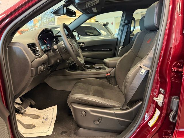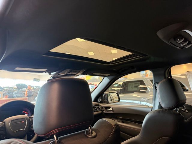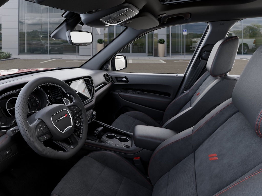 This Durango is well equipped with Blacktop Redline Package (2nd Row Fold/Tumble Captain Chairs, 2nd Row Mini Console with Cupholders, 2nd Row Seat Mounted Inboard Armrests, 3rd Row Floor Mat and Mini Console, 6-Passenger Seating, Black Dodge Grille Badge, Black Roof Rails, Blacktop Leather SRT Performance Seats, Crypto Sweep Etch Accents, Floor Console with Leather Armrest, Gloss Black Badges, Gloss Black Exterior Mirrors, Heated Second Row Seats, Integrated Roof Rail Crossbars, Performance Lower Splitter, Power 8-Way Driver Memory 8-Way Passenger Seats, Power Driver/Passenger 4-Way Lumbar Adjust, Premium Door Trim Panel, Premium Instrument Panel, Satin Black Dodge Tail Lamp Badge, SRT Rear Spoiler, and Ventilated Front Seats), Quick Order Package 22T GT Plus (115V Auxiliary Power Outlet, 7 and 4 Pin Wiring Harness, Adaptive Cruise Control with Stop, Auto High Beam Headlamp Control, Auto-Dimming Exterior Driver Mirror, Blind Spot with Trailer Detection, Class IV Receiver Hitch, Dual Remote USB Port - Charge Only, Exterior Mirrors with Heating Element, Exterior Mirrors with Memory, Exterior Mirrors with Supplemental Signals, Full Speed Forward Collision Warning Plus, Leather Trimmed Bucket Seats, Leather Wrapped Door Panels, LED Auxiliary Low Beam and Turn Signal, Power 6x9 Multi-Function Foldaway Mirrors, Power Sunroof, Power Tilt and Telescopic Steering Column, Radio/Driver Seat/Mirrors Memory, Red Accent Stitching, and Trailer Brake Control), 3.09 Rear Axle Ratio, 3rd row seats: split-bench, 4-Wheel Disc Brakes, 9 Speakers, ABS brakes, Air Conditioning, Alloy wheels, AM/FM radio: SiriusXM w/360L, Apple CarPlay/Android Auto, Auto-dimming Rear-View mirror, Auto-leveling suspension, Automatic temperature control, Brake assist, Bumpers: body-color, Cloth Bucket Seats with Shift Insert, Compass, Delay-off headlights, Driver door bin, Driver vanity mirror, Dual front impact airbags, Dual front side impact airbags, Electronic Stability Control, Emergency communication system: Dodge Connect, Four wheel independent suspension, Front anti-roll bar, Front Bucket Seats, Front Center Armrest w/Storage, Front dual zone A/C, Front reading lights, Fully automatic headlights, Garage door transmitter, Heated door mirrors, Heated front seats, Heated steering wheel, Illuminated entry, Knee airbag, Leather steering wheel, Low tire pressure warning, MyFlexCare Service Plan, Navigation System, Occupant sensing airbag, Outside temperature display, Overhead airbag, Overhead console, Panic alarm, ParkView Rear Back-Up Camera, Passenger door bin, Passenger vanity mirror, Power door mirrors, Power driver seat, Power Liftgate, Power steering, Power windows, Radford Track Experience, Radio data system, Radio: Uconnect 5 Nav with 10.1" Display, Rain sensing wipers, Rear air conditioning, Rear anti-roll bar, Rear Load Leveling Suspension, Rear reading lights, Rear seat center armrest, Rear window defroster, Rear window wiper, Remote keyless entry, Security system, Speed control, Speed-sensing steering, Speed-Sensitive Wipers, Split folding rear seat, Spoiler, Sport steering wheel, Steering wheel mounted audio controls, Tachometer, Telescoping steering wheel, Tilt steering wheel, Traction control, Trip computer, Variably interm Not all customers qualify for all rebates. See dealer for details. Price includes: $500 - 2026 National 2026 Military Bonus Cash . Exp