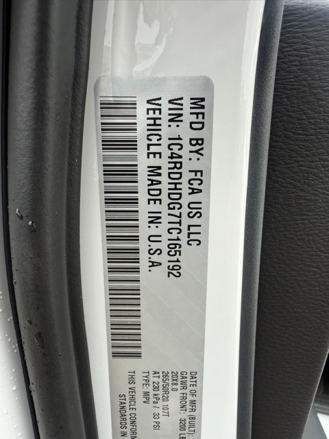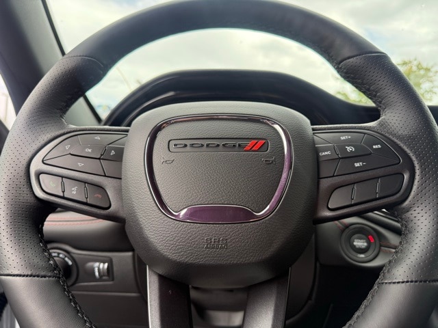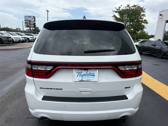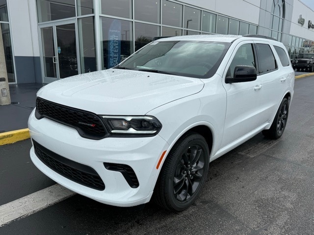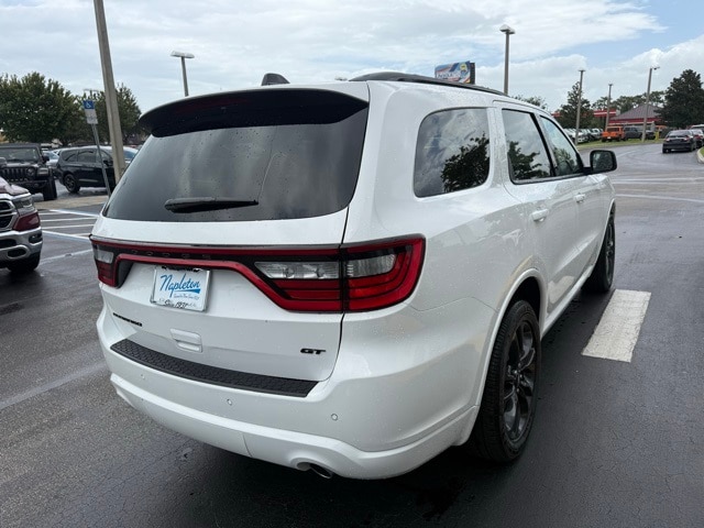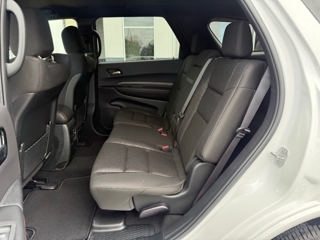 This Durango is well equipped with Blacktop Package (Black Roof Rails, Gloss Black Badges, Gloss Black Exterior Mirrors, GT Gloss Black Badging, Integrated Roof Rail Crossbars, Satin Black Dodge Tail Lamp Badge, and Wheels: 20" x 8" Black Noise Aluminum), Quick Order Package 2BD GT, 18" x 8" Painted Aluminum Wheels, 3.27 Rear Axle Ratio, 3rd row seats: split-bench, 4-Wheel Disc Brakes, 6 Speakers, ABS brakes, Air Conditioning, Alloy wheels, AM/FM radio: SiriusXM w/360L, Apple CarPlay/Android Auto, Auto-dimming Rear-View mirror, Auto-leveling suspension, Automatic temperature control, Brake assist, Bumpers: body-color, Cloth Bucket Seats w/Shift Insert, Compass, Delay-off headlights, Driver door bin, Driver vanity mirror, Dual front impact airbags, Dual front side impact airbags, Electronic Stability Control, Emergency communication system: Dodge Connect, Four wheel independent suspension, Front anti-roll bar, Front Bucket Seats, Front Center Armrest w/Storage, Front dual zone A/C, Front reading lights, Fully automatic headlights, Garage door transmitter, Heated door mirrors, Heated front seats, Heated steering wheel, Illuminated entry, Knee airbag, Leather steering wheel, Low tire pressure warning, MyFlexCare Service Plan, Navigation System, Occupant sensing airbag, Outside temperature display, Overhead airbag, Overhead console, Panic alarm, ParkView Rear Back-Up Camera, Passenger door bin, Passenger vanity mirror, Power door mirrors, Power driver seat, Power Liftgate, Power steering, Power windows, Radio data system, Radio: Uconnect 5 Nav w/10.1" Display, Rear air conditioning, Rear anti-roll bar, Rear Load Leveling Suspension, Rear reading lights, Rear seat center armrest, Rear window defroster, Rear window wiper, Remote keyless entry, Speed control, Speed-sensing steering, Speed-Sensitive Wipers, Split folding rear seat, Spoiler, Sport steering wheel, Steering wheel mounted audio controls, Tachometer, Telescoping steering wheel, Tilt steering wheel, Traction control, Trip computer, Variably intermittent wipers, and Voltmeter. Not all customers qualify for all rebates. See dealer for details. Price includes: $1000 - 2026 National Engine Retail Bonus Cash . Exp. 11/03/2025