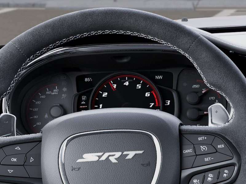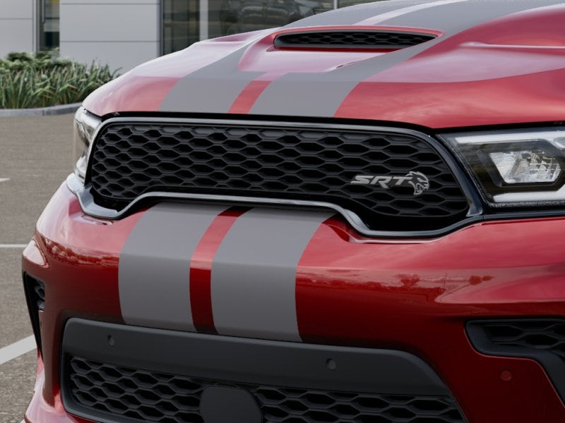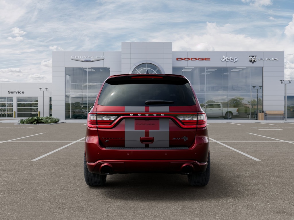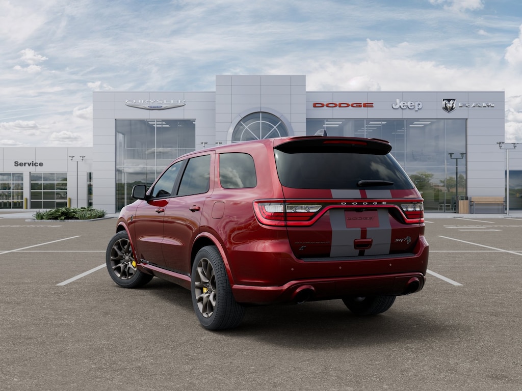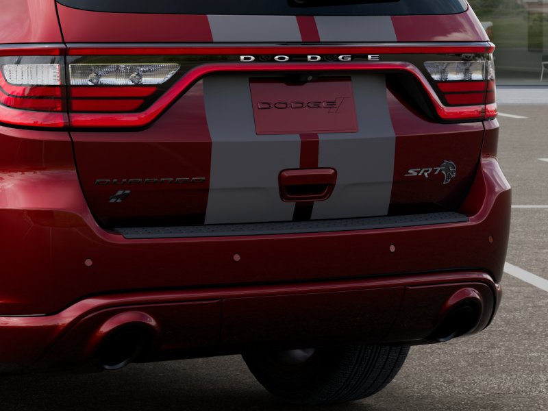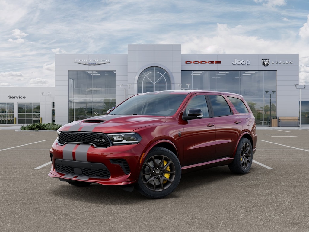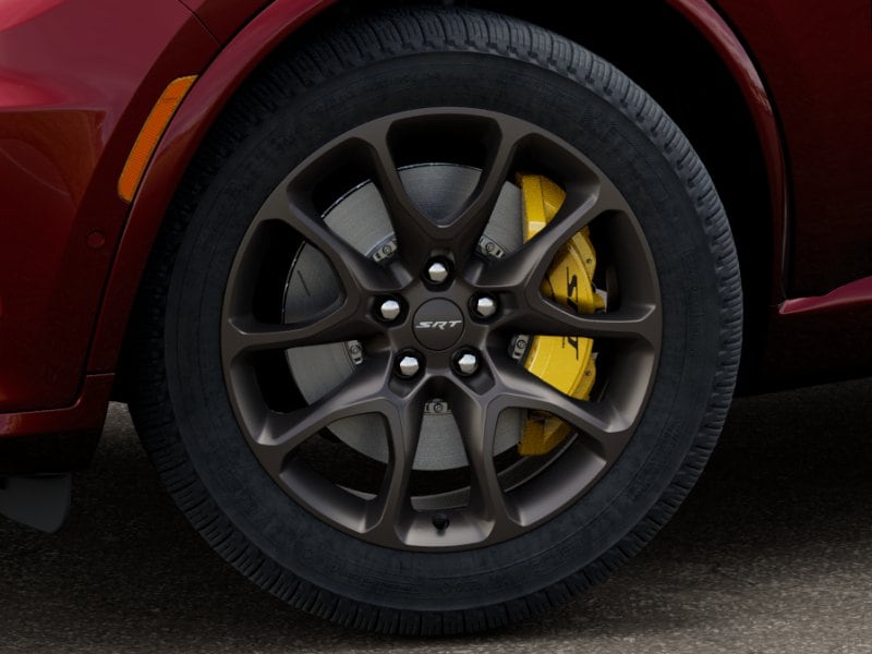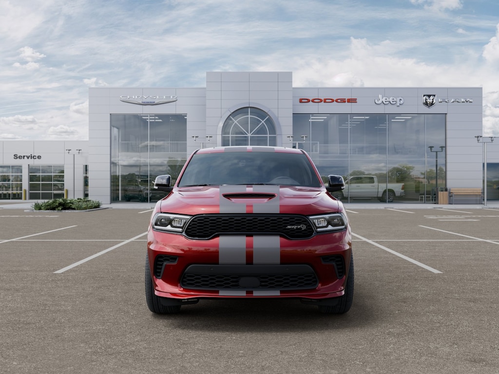 This Durango is well equipped with Gray Metallic Badges (Gloss Black Badges and Satin Black Dodge Tail Lamp Badge), Premium Group (19 Harman/Kardon Amplified Speakers with Subwoofer, 825 Watt Amplifier, Adaptive Cruise Control with Stop, Advanced Brake Assist, Auto High Beam Headlamp Control, Full Speed Forward Collision Warning Plus, Lane Departure Warning Plus, Premium Door Trim Panel, Premium Instrument Panel, and Supercharged Sill Plate), Quick Order Package 2XM Jailbreak (Forged Carbon Fiber Interior Accents and Jailbreak Badge), 2nd Row Fold/Tumble Captain Chairs, 3.70 Rear Axle Ratio, 4-Wheel Disc Brakes, 9 Speakers, ABS brakes, Adaptive suspension, Air Conditioning, Alloy wheels, AM/FM radio: SiriusXM w/360L, Apple CarPlay/Android Auto, Audio memory, Auto-dimming door mirrors, Auto-dimming Rear-View mirror, Automatic temperature control, Brake assist, Bumpers: body-color, Compass, Delay-off headlights, Driver door bin, Driver vanity mirror, Dual front impact airbags, Dual front side impact airbags, Eclipse Black Exhaust Tips, Electronic Stability Control, Emergency communication system: Dodge Connect, Four wheel independent suspension, Front anti-roll bar, Front Bucket Seats, Front Center Armrest w/Storage, Front dual zone A/C, Front reading lights, Fully automatic headlights, Garage door transmitter, Hammerhead Gray Seat Belts, Heated door mirrors, Heated front seats, Heated rear seats, Heated steering wheel, Illuminated entry, Knee airbag, Leather Shift Knob, Leather steering wheel, Leather Trimmed Bucket Seats, Leather/Suede Wrapped Steering Wheel, Low tire pressure warning, Manufacturer's Statement of Origin, Memory seat, MOPAR Dual Stripes- Gunmetal Low Gloss, MyFlexCare Service Plan, Navigation System, Occupant sensing airbag, Outside temperature display, Overhead airbag, Overhead console, Panic alarm, ParkView Rear Back-Up Camera, Passenger door bin, Passenger vanity mirror, Power door mirrors, Power driver seat, Power Liftgate, Power passenger seat, Power steering, Power Sunroof, Power windows, Radio data system, Radio: Uconnect 5 Nav with 10.1" Display, Rain sensing wipers, Rear air conditioning, Rear anti-roll bar, Rear reading lights, Rear seat center armrest, Rear window defroster, Rear window wiper, Remote keyless entry, Security system, Speed control, Speed-sensing steering, Speed-Sensitive Wipers, Split folding rear seat, Spoiler, Sport steering wheel, Steering wheel mounted audio controls, Suede Headliner, Tachometer, Telescoping steering wheel, Tilt steering wheel, Traction control, Trip computer, Turn signal indicator mirrors, Variably intermittent wipers, Ventilated front seats, Voltmeter, Wheels: 20" x 10" Machine Face with Dark Pockets, Wheels: 20" x 10" SRT Hellcat Brass Monkey, and Yellow Brake Calipers.