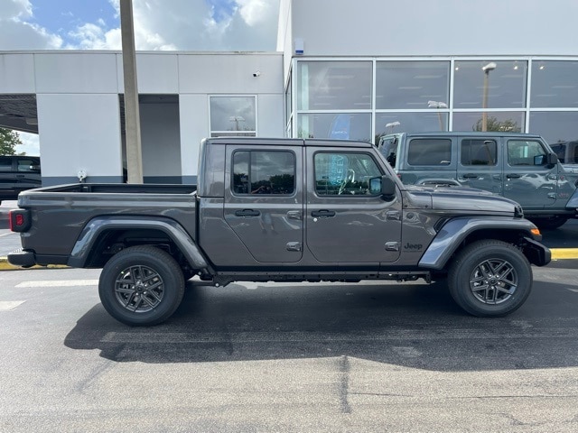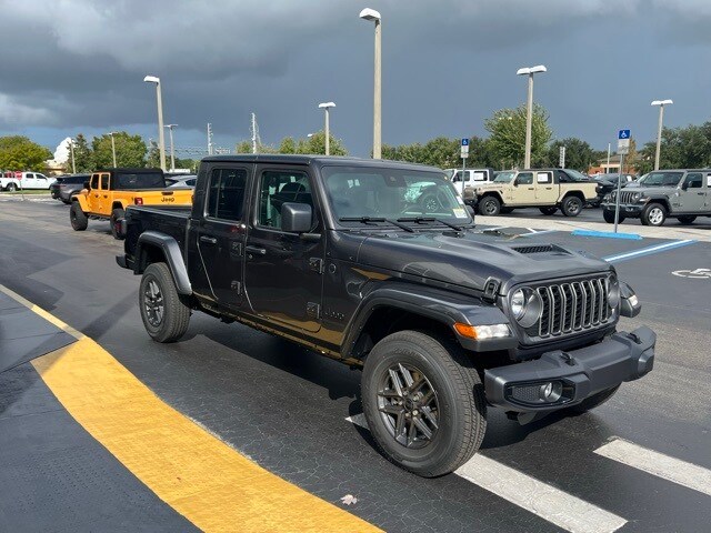 This Gladiator is well equipped with Dark Sky Appearance Package (Body Color Fender Flares (2-Piece), Daytime Running Lamp System, Mold In Color Bumper w/Gloss Black, and Performance Hood), Quick Order Package 24S Sport S (Advanced Brake Assist, Automatic Headlamps, Deep Tint Sunscreen Windows, Enhanced Adaptive Cruise Control, Full Speed Forward Collision Warning Plus, Normal Duty Plus Suspension, Power Heated Mirrors, Premium Wrapped Steering Wheel, Security Alarm, Sun Visors w/Illuminated Vanity Mirrors, and Wheels: 17" x 7.5" Gray), 110 MPH Vehicle Max Speed Calibration, 12.3" Touchscreen Display, 3.73 Rear Axle Ratio, 4-Wheel Disc Brakes, 4G LTE Wi-Fi Hot Spot, 8 Speakers, ABS brakes, Air Conditioning, Alexa Built-In, AM/FM radio: SiriusXM, Apple CarPlay, Apple CarPlay/Android Auto, Body Color 3-Piece Hard Top, Brake assist, Cloth Low-Back Bucket Seats, Compass, Connectivity - US/Canada, Delay-off headlights, Driver door bin, Driver vanity mirror, Dual front impact airbags, Dual front side impact airbags, Electronic Stability Control, Freedom Panel Storage Bag, Front anti-roll bar, Front Bucket Seats, Front Center Armrest w/Storage, Front fog lights, Front reading lights, Google Android Auto, Illuminated entry, Integrated roll-over protection, Low tire pressure warning, Manufacturer's Statement of Origin, MOPAR Spray In Bedliner, Normal Duty Suspension, Occupant sensing airbag, Outside temperature display, Overhead airbag, Panic alarm, ParkView Rear Back-Up Camera, Passenger door bin, Passenger vanity mirror, Power steering, Power windows, Radio data system, Radio: Uconnect 5 w/12.3" Display, Rear anti-roll bar, Rear reading lights, Rear Sliding Window, Rear Window Defroster, Remote keyless entry, Speed control, Split folding rear seat, Steering wheel mounted audio controls, Tachometer, Telescoping steering wheel, Tilt steering wheel, Traction control, Trip computer, USB Host Flip, Variably intermittent wipers, Voltmeter, and Wheels: 17" x 7.5" Black Steel Styled. Not all customers qualify for all rebates. See dealer for details. Price includes: $1000 - 2025 Southeast BC Bonus Cash. Exp. 02/02/2026 $1000 - 2025 Southeast BC Regional Lease Bonus Cash. Exp. 02/02/2026 $2250 - 2025 National Retail Bonus Cash . Exp. 02/02/2026