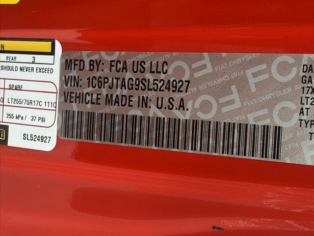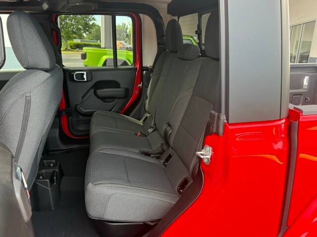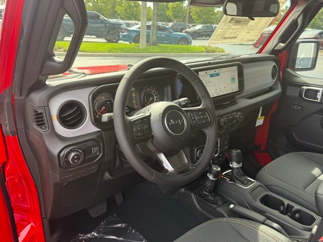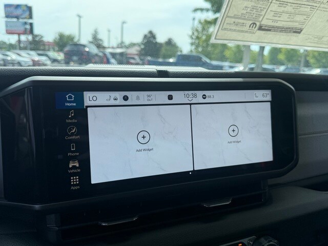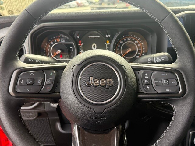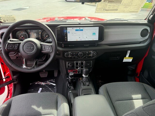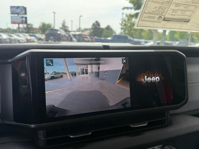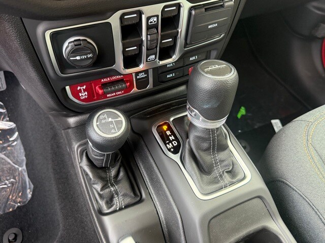This Gladiator is well equipped with Convenience Group (Corning Gorilla Glass, Daytime Running Lamp System, Emergency/Assistance Call, Front Door Locks 2-Door Passive Entry, Heated Front Seats, Heated Steering Wheel, Remote Start System, and Universal Garage Door Opener), Quick Order Package 24W Willys (4-Wheel Drive Decal, Advanced Brake Assist, Air Conditioning w/Auto Temperature Control, Automatic Headlamps, Auxiliary Switches, Black Grille, Body Color Fender Flares (2-Piece), Class IV Receiver Hitch, Cluster 7.0" TFT Color Display, Daytime Running Lamps LED Accents, Deep Tint Sunscreen Windows, E-Locker Rear Axle, Enhanced Adaptive Cruise Control, Front Heavy Duty Red Accent Shock Absorbers, Front LED Fog Lamps, Full Speed Forward Collision Warning Plus, Heavy-Duty Engine Cooling, LED Premium Reflector Headlamps, LED Taillamps, Mold In Color Bumper w/Gloss Black, MOPAR All-Weather Slush Mats, Off-Road Plus Mode, Power Heated Mirrors, Premium Wrapped Steering Wheel, Protection Sill Rails, Rear Heavy Duty Red Accent Shock Absorbers, Security Alarm, Sun Visors w/Illuminated Vanity Mirrors, Trailer Hitch Zoom, Wheels: 17" x 7.5" Painted Black, Willys Hood Decal, and Willys Suspension), 110 MPH Vehicle Max Speed Calibration, 12.3" Touchscreen Display, 3.73 Rear Axle Ratio, 4-Wheel Disc Brakes, 4G LTE Wi-Fi Hot Spot, 8 Speakers, ABS brakes, Air Conditioning, Alexa Built-In, AM/FM radio: SiriusXM, Apple CarPlay, Apple CarPlay/Android Auto, Black 3-Piece Hard Top, Brake assist, Cloth Low-Back Bucket Seats, Compass, Connectivity - US/Canada, Delay-off headlights, Driver door bin, Driver vanity mirror, Dual front impact airbags, Dual front side impact airbags, Electronic Stability Control, Freedom Panel Storage Bag, Front anti-roll bar, Front Bucket Seats, Front Center Armrest w/Storage, Front fog lights, Front reading lights, Google Android Auto, Illuminated entry, Integrated roll-over protection, Low tire pressure warning, Manufacturer's Statement of Origin, MOPAR Spray In Bedliner, Normal Duty Suspension, Occupant sensing airbag, Outside temperature display, Overhead airbag, Panic alarm, ParkView Rear Back-Up Camera, Passenger door bin, Passenger vanity mirror, Power steering, Power windows, Radio data system, Radio: Uconnect 5 w/12.3" Display, Rear anti-roll bar, Rear reading lights, Rear Sliding Window, Rear Window Defroster, Remote keyless entry, Speed control, Split folding rear seat, Steering wheel mounted audio controls, Tachometer, Telescoping steering wheel, Tilt steering wheel, Traction control, Trip computer, USB Host Flip, Variably intermittent wipers, Voltmeter, and Wheels: 17" x 7.5" Black Steel Styled.