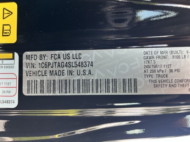This Gladiator is well equipped with Dark Sky Appearance Package (Body Color Fender Flares (2-Piece), Daytime Running Lamp System, Mold In Color Bumper w/Gloss Black, and Performance Hood), Quick Order Package 24S Sport S (Advanced Brake Assist, Automatic Headlamps, Deep Tint Sunscreen Windows, Enhanced Adaptive Cruise Control, Full Speed Forward Collision Warning Plus, Normal Duty Plus Suspension, Power Heated Mirrors, Premium Wrapped Steering Wheel, Security Alarm, Sun Visors w/Illuminated Vanity Mirrors, and Wheels: 17" x 7.5" Gray), 110 MPH Vehicle Max Speed Calibration, 12.3" Touchscreen Display, 3.73 Rear Axle Ratio, 4-Wheel Disc Brakes, 4G LTE Wi-Fi Hot Spot, 8 Speakers, ABS brakes, Air Conditioning, Alexa Built-In, AM/FM radio: SiriusXM, Apple CarPlay, Apple CarPlay/Android Auto, Body Color 3-Piece Hard Top, Brake assist, Cloth Low-Back Bucket Seats, Compass, Connectivity - US/Canada, Delay-off headlights, Driver door bin, Driver vanity mirror, Dual front impact airbags, Dual front side impact airbags, Electronic Stability Control, Freedom Panel Storage Bag, Front anti-roll bar, Front Bucket Seats, Front Center Armrest w/Storage, Front fog lights, Front reading lights, Google Android Auto, Illuminated entry, Integrated roll-over protection, Low tire pressure warning, Manufacturer's Statement of Origin, MOPAR Spray In Bedliner, Normal Duty Suspension, Occupant sensing airbag, Outside temperature display, Overhead airbag, Panic alarm, ParkView Rear Back-Up Camera, Passenger door bin, Passenger vanity mirror, Power steering, Power windows, Radio data system, Radio: Uconnect 5 w/12.3" Display, Rear anti-roll bar, Rear reading lights, Rear Sliding Window, Rear Window Defroster, Remote keyless entry, Speed control, Split folding rear seat, Steering wheel mounted audio controls, Tachometer, Telescoping steering wheel, Tilt steering wheel, Traction control, Trip computer, USB Host Flip, Variably intermittent wipers, Voltmeter, and Wheels: 17" x 7.5" Black Steel Styled. Not all customers qualify for all rebates. See dealer for details. Price includes: $1000 - 2025 South BC Regional Bonus Cash SCSN. Exp. 11/03/2025 $2250 - 2025 National Bonus Cash . Exp. 11/03/2025