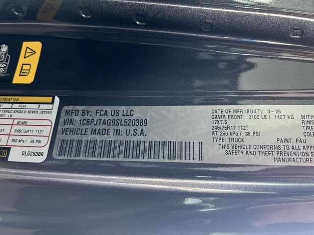 This Gladiator is well equipped with Quick Order Package 24S Sport S (Advanced Brake Assist, Automatic Headlamps, Deep Tint Sunscreen Windows, Enhanced Adaptive Cruise Control, Full Speed Forward Collision Warning Plus, Normal Duty Plus Suspension, Power Heated Mirrors, Premium Wrapped Steering Wheel, Security Alarm, Sun Visors w/Illuminated Vanity Mirrors, and Wheels: 17" x 7.5" Gray), Technology Group (115V Auxiliary Power Outlet, 12.3" Touchscreen Display, 400W Inverter, 4G LTE Wi-Fi Hot Spot, Alexa Built-In, Apple CarPlay, Auto-Dimming Rear-View Mirror, Bluetooth Wireless Speaker, Connected Travel & Traffic Services, Connectivity - US/Canada, Google Android Auto, GPS Antenna Input, GPS Navigation, HD Radio, Integrated Center Stack Radio, Integrated Voice Command w/Bluetooth, Media Hub w/2 Charge Only USBs, Radio: Uconnect 5 Nav w/12.3" Display, SiriusXM Radio Service, SiriusXM w/360L, and USB Host Flip), 110 MPH Vehicle Max Speed Calibration, 3.73 Rear Axle Ratio, 4-Wheel Disc Brakes, 8 Speakers, ABS brakes, Air Conditioning, Alpine Premium Audio System, AM/FM radio: SiriusXM, Apple CarPlay/Android Auto, Black 3-Piece Hard Top, Brake assist, Cloth Low-Back Bucket Seats, Compass, Delay-off headlights, Driver door bin, Driver vanity mirror, Dual front impact airbags, Dual front side impact airbags, Electronic Stability Control, Freedom Panel Storage Bag, Front anti-roll bar, Front Bucket Seats, Front Center Armrest w/Storage, Front fog lights, Front reading lights, Illuminated entry, Integrated roll-over protection, Low tire pressure warning, Manufacturer's Statement of Origin, Normal Duty Suspension, Occupant sensing airbag, Outside temperature display, Overhead airbag, Panic alarm, ParkView Rear Back-Up Camera, Passenger door bin, Passenger vanity mirror, Power steering, Power windows, Radio data system, Radio: Uconnect 5 w/12.3" Display, Rear anti-roll bar, Rear reading lights, Rear Sliding Window, Rear Window Defroster, Remote keyless entry, Speed control, Split folding rear seat, Steering wheel mounted audio controls, Tachometer, Telescoping steering wheel, Tilt steering wheel, Traction control, Trip computer, Variably intermittent wipers, Voltmeter, and Wheels: 17" x 7.5" Black Steel Styled. Not all customers qualify for all rebates. See dealer for details. Price includes: $1000 - 2025 South BC Regional Bonus Cash SCSN. Exp. 01/05/2026 $2000 - 2025 National Holiday Select Inventory Bonus Cash. Exp. 01/05/2026 $2250 - 2025 National Bonus Cash . Exp. 01/05/2026