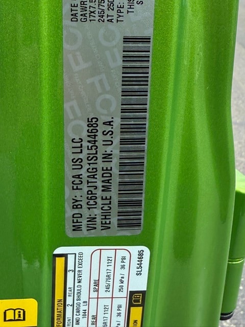 This Gladiator is well equipped with Quick Order Package 24S Sport S (Advanced Brake Assist, Automatic Headlamps, Deep Tint Sunscreen Windows, Enhanced Adaptive Cruise Control, Full Speed Forward Collision Warning Plus, Normal Duty Plus Suspension, Power Heated Mirrors, Premium Wrapped Steering Wheel, Security Alarm, Sun Visors w/Illuminated Vanity Mirrors, and Wheels: 17" x 7.5" Gray), 110 MPH Vehicle Max Speed Calibration, 12.3" Touchscreen Display, 3.73 Rear Axle Ratio, 4-Wheel Disc Brakes, 4G LTE Wi-Fi Hot Spot, 8 Speakers, ABS brakes, Air Conditioning, Alexa Built-In, AM/FM radio: SiriusXM, Apple CarPlay, Apple CarPlay/Android Auto, Black 3-Piece Hard Top, Brake assist, Cloth Low-Back Bucket Seats, Compass, Connectivity - US/Canada, Delay-off headlights, Driver door bin, Driver vanity mirror, Dual front impact airbags, Dual front side impact airbags, Electronic Stability Control, Freedom Panel Storage Bag, Front anti-roll bar, Front Bucket Seats, Front Center Armrest w/Storage, Front fog lights, Front reading lights, Google Android Auto, Illuminated entry, Integrated roll-over protection, Low tire pressure warning, Manufacturer's Statement of Origin, MOPAR Spray In Bedliner, Normal Duty Suspension, Occupant sensing airbag, Outside temperature display, Overhead airbag, Panic alarm, ParkView Rear Back-Up Camera, Passenger door bin, Passenger vanity mirror, Power steering, Power windows, Radio data system, Radio: Uconnect 5 w/12.3" Display, Rear anti-roll bar, Rear reading lights, Rear Sliding Window, Rear Window Defroster, Remote keyless entry, Speed control, Split folding rear seat, Steering wheel mounted audio controls, Tachometer, Telescoping steering wheel, Tilt steering wheel, Traction control, Trip computer, USB Host Flip, Variably intermittent wipers, Voltmeter, and Wheels: 17" x 7.5" Black Steel Styled. Not all customers qualify for all rebates. See dealer for details. Price includes: $1000 - 2025 South BC Regional Bonus Cash SCSN. Exp. 11/03/2025 $2250 - 2025 National Bonus Cash . Exp. 11/03/2025