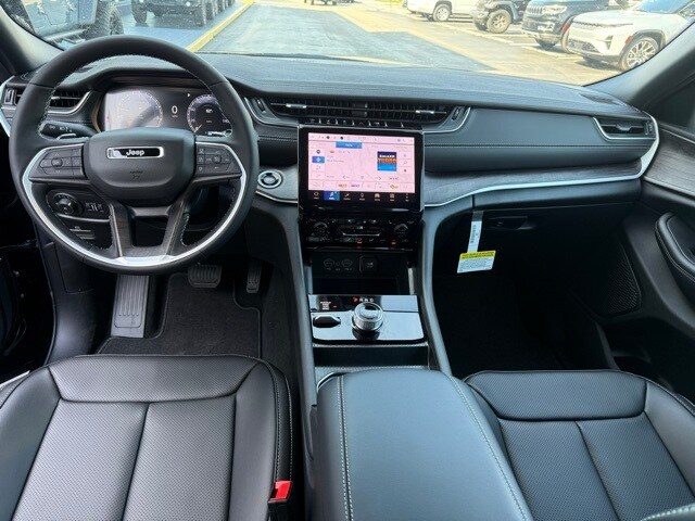 This Grand Cherokee is well equipped with Black Appearance Package (Gloss Black Exterior Accents and Wheels: 20" x 8.5" Gloss Black Painted Aluminum), Luxury Tech Group II (2nd-Row Manual Window Shades, Auto-Dimming Exterior Driver Mirror, Capri Leatherette with Axis II Seats, Front/Rear Doors and Liftgate with Passive Entry, Integrated Off-Road Camera, Intersection Collision Assist System, Memory Steering Column, ParkSense Front/Rear Park Assist with Stop, Power Tilt/Telescope Steering Column, Rain Sensitive Windshield Wipers, Rear Back-Up Camera Washer, Rearview Autodim Digital Display Mirror, Surround View Camera System, Ventilated Front Seats, and Wireless Charging Pad), Quick Order Package 22E, Trailer Tow Package (220 Amp Alternator, 7 and 4-Pin Wiring Harness, Automatic Headlamp Levelling System, Class IV Receiver Hitch, Heavy-Duty Engine Cooling, Rear Load Levelling Suspension, and Trailer Hitch Zoom), 4-Wheel Disc Brakes, 6 Speakers, ABS brakes, Active Noise Control System, Air Conditioning, Alloy wheels, AM/FM radio: SiriusXM with 360L, Anti-whiplash front head restraints, Audio memory, Auto High-beam Headlights, Automatic temperature control, Brake assist, Bumpers: body-color, Capri Leatherette Seats, Compass, Delay-off headlights, Driver door bin, Driver vanity mirror, Dual front impact airbags, Dual front side impact airbags, Dual-Pane Panoramic Sunroof, Electronic Stability Control, Emergency communication system, Four wheel independent suspension, Front anti-roll bar, Front Bucket Seats, Front Center Armrest w/Storage, Front dual zone A/C, Front fog lights, Front reading lights, Fully automatic headlights, Garage door transmitter, Heated door mirrors, Heated front seats, Heated rear seats, Heated steering wheel, Illuminated entry, Knee airbag, Low tire pressure warning, Memory seat, Model Year Tracking, Navigation System, Normal Duty Suspension, Occupant sensing airbag, Outside temperature display, Overhead airbag, Overhead console, Panic alarm, ParkView Rear Back-Up Camera, Passenger door bin, Passenger vanity mirror, Power door mirrors, Power driver seat, Power Liftgate, Power passenger seat, Power steering, Power windows, Radio data system, Radio: Uconnect 5 Nav with 10.1" Display, Rear anti-roll bar, Rear reading lights, Rear window defroster, Rear window wiper, Remote keyless entry, Security system, Speed control, Speed-Sensitive Wipers, Split folding rear seat, Spoiler, Steering wheel mounted audio controls, Tachometer, Telescoping steering wheel, Tilt steering wheel, Traction control, Trip computer, Turn signal indicator mirrors, Variably intermittent wipers, Voltmeter, and Wheels: 18" x 8" Polished/Painted Aluminum. Not all customers qualify for all rebates. See dealer for details. Price includes: $1250 - 2025 South BC Retail Bonus Cash . Exp. 01/05/2026 $2250 - 2025 National Retail Bonus Cash . Exp. 01/05/2026 $750 - 2025 South BC SFS Retail Bonus Cash. Exp. 01/05/2026