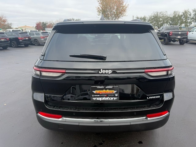 This Grand Cherokee is well equipped with Luxury Tech Group I (115V Auxiliary Power Outlet, Heated Front Seats, Heated Steering Wheel, Power Liftgate, Rain Sensitive Windshield Wipers, Remote Start System, Satellite Radio, Selectable Tire Fill Alert, and Wireless Charging Pad), Quick Order Package 23D Laredo X (Laredo X, Power Sunroof, and Wheels: 18" x 8" Fully Painted Aluminum), 4-Wheel Disc Brakes, 6 Speakers, ABS brakes, Air Conditioning, Alloy wheels, AM/FM radio: SiriusXM, Anti-whiplash front head restraints, Automatic temperature control, Brake assist, Bumpers: body-color, Cloth Seats, Compass, Delay-off headlights, Driver door bin, Driver vanity mirror, Dual front impact airbags, Dual front side impact airbags, Electronic Stability Control, Emergency communication system, Four wheel independent suspension, Front anti-roll bar, Front Bucket Seats, Front Center Armrest w/Storage, Front dual zone A/C, Front reading lights, Fully automatic headlights, Heated door mirrors, Illuminated entry, Knee airbag, Low tire pressure warning, Model Year Tracking, Normal Duty Suspension, Occupant sensing airbag, Outside temperature display, Overhead airbag, Overhead console, Panic alarm, ParkView Rear Back-Up Camera, Passenger door bin, Passenger vanity mirror, Power door mirrors, Power driver seat, Power steering, Power windows, Radio data system, Radio: Uconnect 5 w/8.4" Display, Rear anti-roll bar, Rear reading lights, Rear window defroster, Rear window wiper, Remote keyless entry, Security system, Speed control, Speed-Sensitive Wipers, Split folding rear seat, Spoiler, Steering wheel mounted audio controls, Tachometer, Telescoping steering wheel, Tilt steering wheel, Traction control, Trip computer, Variably intermittent wipers, Voltmeter, and Wheels: 17" x 6.5" Fully Painted Aluminum. Not all customers qualify for all rebates. See dealer for details. Price includes: $1750 - 2025 National Retail Bonus Cash . Exp. 11/03/2025 $500 - 2025 National Jeep Monopoly Money Bonus Cash . Exp. 11/03/2025