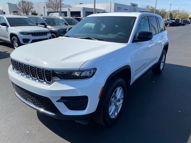 This Grand Cherokee is well equipped with Luxury Tech Group I (Power Liftgate, Rain Sensitive Windshield Wipers, and Wireless Charging Pad), Quick Order Package 23D Laredo X (Laredo X and Wheels: 18" x 8" Fully Painted Aluminum), 4-Wheel Disc Brakes, 6 Speakers, ABS brakes, Air Conditioning, Alloy wheels, Anti-whiplash front head restraints, Automatic temperature control, Brake assist, Bumpers: body-color, Cloth Seats, Compass, Delay-off headlights, Driver door bin, Driver vanity mirror, Dual front impact airbags, Dual front side impact airbags, Electronic Stability Control, Emergency communication system, Four wheel independent suspension, Front anti-roll bar, Front Bucket Seats, Front Center Armrest w/Storage, Front dual zone A/C, Front reading lights, Fully automatic headlights, Heated door mirrors, Illuminated entry, Knee airbag, Low tire pressure warning, Model Year Tracking, Normal Duty Suspension, Occupant sensing airbag, Outside temperature display, Overhead airbag, Overhead console, Panic alarm, ParkView Rear Back-Up Camera, Passenger door bin, Passenger vanity mirror, Power door mirrors, Power driver seat, Power steering, Power windows, Radio data system, Radio: Uconnect 5 w/8.4" Display, Rear anti-roll bar, Rear reading lights, Rear window defroster, Rear window wiper, Remote keyless entry, Security system, Speed control, Speed-Sensitive Wipers, Split folding rear seat, Spoiler, Steering wheel mounted audio controls, Tachometer, Telescoping steering wheel, Tilt steering wheel, Traction control, Trip computer, Variably intermittent wipers, Voltmeter, and Wheels: 17" x 6.5" Fully Painted Aluminum. Not all customers qualify for all rebates. See dealer for details. Price includes: $1500 - 2025 South BC Select Inventory Bonus Cash. Exp. 11/03/2025 $1750 - 2025 National Retail Bonus Cash . Exp. 11/03/2025 $2000 - 2025 National Overaged Select Inventory Bonus Cash. Exp. 11/03/2025 $500 - 2025 National Jeep Monopoly Money Bonus Cash . Exp. 11/03/2025