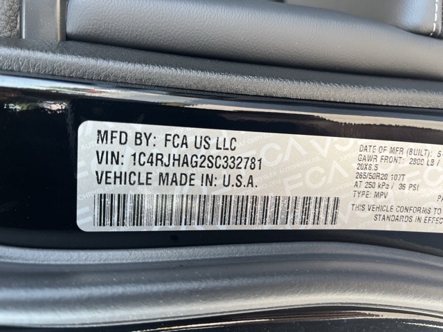 This Grand Cherokee is well equipped with Quick Order Package 23M Altitude X (115V Auxiliary Power Outlet, Altitude X, Black Headliner, Capri Leatherette/Suede Seats, Delete Laredo Badge, Gloss Black Exterior Accents, Heated Front Seats, Heated Steering Wheel, Power Liftgate, Power Sunroof, Rain Sensitive Windshield Wipers, Remote Start System, Selectable Tire Fill Alert, Wheels: 18" x 8" Fully Painted Aluminum 1, and Wireless Charging Pad), 4-Wheel Disc Brakes, 6 Speakers, ABS brakes, Air Conditioning, Alloy wheels, AM/FM radio: SiriusXM, Anti-whiplash front head restraints, Automatic temperature control, Brake assist, Bumpers: body-color, Cloth Seats, Compass, Delay-off headlights, Driver door bin, Driver vanity mirror, Dual front impact airbags, Dual front side impact airbags, Electronic Stability Control, Emergency communication system, Four wheel independent suspension, Front anti-roll bar, Front Bucket Seats, Front Center Armrest w/Storage, Front dual zone A/C, Front reading lights, Fully automatic headlights, Heated door mirrors, Illuminated entry, Knee airbag, Low tire pressure warning, Model Year Tracking, Normal Duty Suspension, Occupant sensing airbag, Outside temperature display, Overhead airbag, Overhead console, Panic alarm, ParkView Rear Back-Up Camera, Passenger door bin, Passenger vanity mirror, Power door mirrors, Power driver seat, Power steering, Power windows, Radio data system, Radio: Uconnect 5 w/8.4" Display, Rear anti-roll bar, Rear reading lights, Rear window defroster, Rear window wiper, Remote keyless entry, Security system, Speed control, Speed-Sensitive Wipers, Split folding rear seat, Spoiler, Steering wheel mounted audio controls, Tachometer, Telescoping steering wheel, Tilt steering wheel, Traction control, Trip computer, Variably intermittent wipers, Voltmeter, Wheels: 17" x 6.5" Fully Painted Aluminum, and Wheels: 20" x 8.5" Gloss Black Painted Aluminum. Not all customers qualify for all rebates. See dealer for details. Price includes: $1750 - 2025 National Retail Bonus Cash . Exp. 11/03/2025 $500 - 2025 National Jeep Monopoly Money Bonus Cash . Exp. 11/03/2025