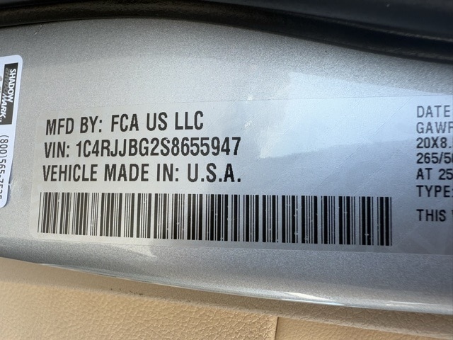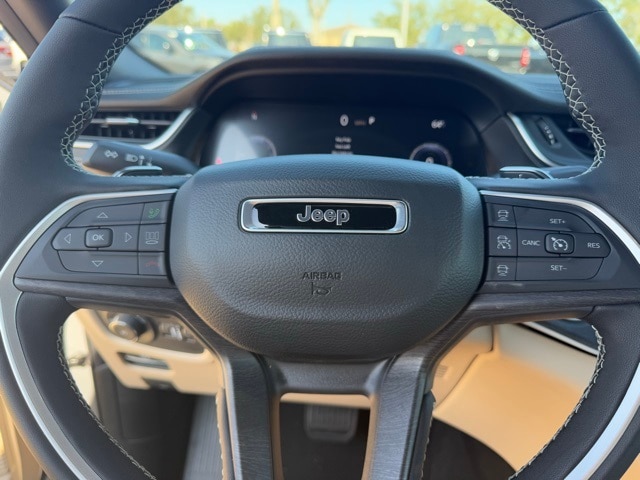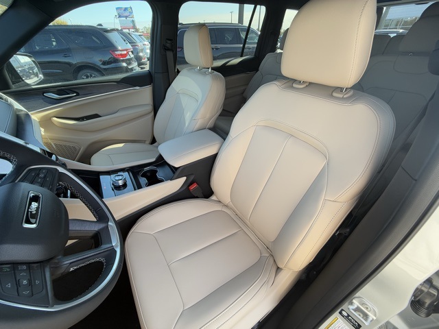 This Grand Cherokee L is well equipped with Quick Order Package 22E, 3.45 Rear Axle Ratio, 3rd row seats: split-bench, 4-Wheel Disc Brakes, 6 Speakers, ABS brakes, Active Noise Control System, Air Conditioning, Alloy wheels, AM/FM radio: SiriusXM with 360L, Anti-whiplash front head restraints, Audio memory, Auto High-beam Headlights, Automatic temperature control, Brake assist, Bumpers: body-color, Capri Leatherette Seats, Compass, Delay-off headlights, Driver door bin, Driver vanity mirror, Dual front impact airbags, Dual front side impact airbags, Electronic Stability Control, Emergency communication system, Four wheel independent suspension, Front anti-roll bar, Front Bucket Seats, Front Center Armrest w/Storage, Front dual zone A/C, Front fog lights, Front reading lights, Fully automatic headlights, Garage door transmitter, Heated door mirrors, Heated front seats, Heated rear seats, Heated steering wheel, Illuminated entry, Knee airbag, Low tire pressure warning, Manual Fold Seatbacks, Memory seat, Model Year Tracking, Navigation System, Normal Duty Suspension, Occupant sensing airbag, Outside temperature display, Overhead airbag, Overhead console, Panic alarm, ParkView Rear Back-Up Camera, Passenger door bin, Passenger vanity mirror, Power door mirrors, Power driver seat, Power Liftgate, Power passenger seat, Power steering, Power windows, Radio data system, Radio: Uconnect 5 Nav w/10.1" Display, Rear air conditioning, Rear anti-roll bar, Rear reading lights, Rear window defroster, Rear window wiper, Reclining 3rd row seat, Remote keyless entry, Security system, Speed control, Speed-Sensitive Wipers, Split folding rear seat, Spoiler, Steering wheel mounted audio controls, Tachometer, Telescoping steering wheel, Tilt steering wheel, Traction control, Trip computer, Turn signal indicator mirrors, Variably intermittent wipers, Voltmeter, Wheels: 18" x 8.0" Polished/Painted Aluminum, and Wheels: 20" x 8.5" Machined/Painted Aluminum.