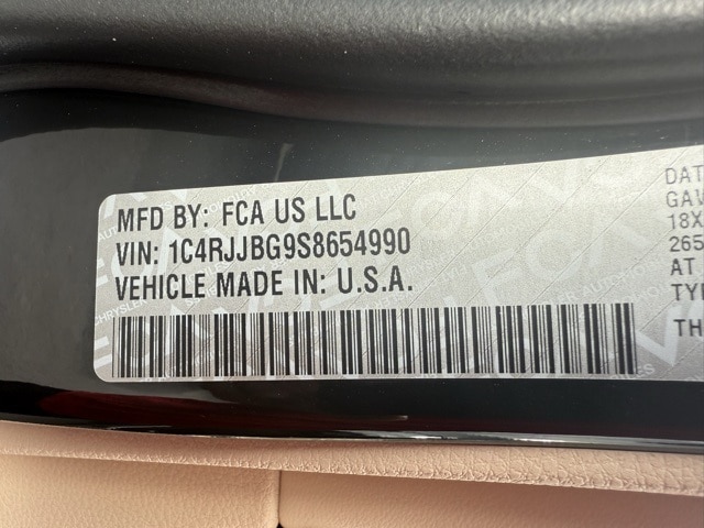 This Grand Cherokee L is well equipped with Luxury Tech Group II (2nd Row Manual Window Shades, Auto-Dimming Exterior Driver Mirror, Capri Leatherette w/Axis II Seats, Integrated Off-Road Camera, Intersection Collision Assist System, Memory Steering Column, ParkSense Front/Rear Park Assist w/Stop, Passive Entry - Front/Rear Doors, Liftgate, Power Tilt/Telescope Steering Column, Rain Sensitive Windshield Wipers, Rear Back Up Camera Washer, Rearview Autodim Digital Display Mirror, Surround View Camera System, Ventilated Front Seats, and Wireless Charging Pad), Quick Order Package 22E, 3.45 Rear Axle Ratio, 3rd row seats: split-bench, 4-Wheel Disc Brakes, 6 Speakers, ABS brakes, Active Noise Control System, Air Conditioning, Alloy wheels, AM/FM radio: SiriusXM with 360L, Anti-whiplash front head restraints, Audio memory, Auto High-beam Headlights, Automatic temperature control, Brake assist, Bumpers: body-color, Capri Leatherette Seats, Compass, Delay-off headlights, Driver door bin, Driver vanity mirror, Dual front impact airbags, Dual front side impact airbags, Dual-Pane Panoramic Sunroof, Electronic Stability Control, Emergency communication system, Four wheel independent suspension, Front anti-roll bar, Front Bucket Seats, Front Center Armrest w/Storage, Front dual zone A/C, Front fog lights, Front reading lights, Fully automatic headlights, Garage door transmitter, Heated door mirrors, Heated front seats, Heated rear seats, Heated steering wheel, Illuminated entry, Interior Rear Facing Camera, Knee airbag, Low tire pressure warning, Manual Fold Seatbacks, Memory seat, Model Year Tracking, Navigation System, Normal Duty Suspension, Occupant sensing airbag, Outside temperature display, Overhead airbag, Overhead console, Panic alarm, ParkView Rear Back-Up Camera, Passenger door bin, Passenger vanity mirror, Power door mirrors, Power driver seat, Power Liftgate, Power passenger seat, Power steering, Power windows, Radio data system, Radio: Uconnect 5 Nav w/10.1" Display, Rear air conditioning, Rear anti-roll bar, Rear reading lights, Rear window defroster, Rear window wiper, Reclining 3rd row seat, Remote keyless entry, Security system, Speed control, Speed-Sensitive Wipers, Split folding rear seat, Spoiler, Steering wheel mounted audio controls, Tachometer, Telescoping steering wheel, Tilt steering wheel, Traction control, Trip computer, Turn signal indicator mirrors, Variably intermittent wipers, Voltmeter, and Wheels: 18" x 8.0" Polished/Painted Aluminum. Not all customers qualify for all rebates. See dealer for details. Price includes: $2000 - 2025 National Retail Bonus Cash . Exp. 11/03/2025 $500 - 2025 National Jeep Monopoly Money Bonus Cash . Exp. 11/03/2025 $750 - 2025 South BC Retail Bonus Cash . Exp. 11/03/2025 $750 - 2025 South BC SFS Retail Bonus Cash. Exp. 11/03/2025