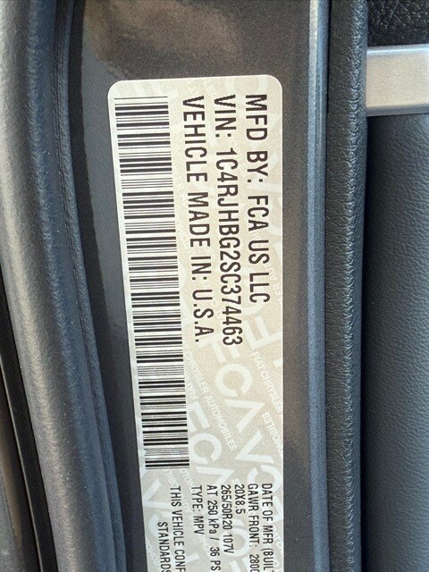 This Grand Cherokee is well equipped with Black Appearance Package (Gloss Black Exterior Accents and Wheels: 20" x 8.5" Gloss Black Painted Aluminum), Luxury Tech Group II (2nd-Row Manual Window Shades, Auto-Dimming Exterior Driver Mirror, Capri Leatherette with Axis II Seats, Front/Rear Doors and Liftgate with Passive Entry, Integrated Off-Road Camera, Intersection Collision Assist System, Memory Steering Column, ParkSense Front/Rear Park Assist with Stop, Power Tilt/Telescope Steering Column, Rain Sensitive Windshield Wipers, Rear Back-Up Camera Washer, Rearview Autodim Digital Display Mirror, Surround View Camera System, Ventilated Front Seats, and Wireless Charging Pad), Quick Order Package 22E, Trailer Tow Package (220 Amp Alternator, 7 and 4-Pin Wiring Harness, Automatic Headlamp Levelling System, Class IV Receiver Hitch, Heavy-Duty Engine Cooling, Rear Load Levelling Suspension, and Trailer Hitch Zoom), 4-Wheel Disc Brakes, 6 Speakers, ABS brakes, Active Noise Control System, Air Conditioning, Alloy wheels, AM/FM radio: SiriusXM with 360L, Anti-whiplash front head restraints, Audio memory, Auto High-beam Headlights, Automatic temperature control, Brake assist, Bumpers: body-color, Capri Leatherette Seats, Compass, Delay-off headlights, Driver door bin, Driver vanity mirror, Dual front impact airbags, Dual front side impact airbags, Dual-Pane Panoramic Sunroof, Electronic Stability Control, Emergency communication system, Four wheel independent suspension, Front anti-roll bar, Front Bucket Seats, Front Center Armrest w/Storage, Front dual zone A/C, Front fog lights, Front reading lights, Fully automatic headlights, Garage door transmitter, Heated door mirrors, Heated front seats, Heated rear seats, Heated steering wheel, Illuminated entry, Knee airbag, Low tire pressure warning, Memory seat, Model Year Tracking, Navigation System, Normal Duty Suspension, Occupant sensing airbag, Outside temperature display, Overhead airbag, Overhead console, Panic alarm, ParkView Rear Back-Up Camera, Passenger door bin, Passenger vanity mirror, Power door mirrors, Power driver seat, Power Liftgate, Power passenger seat, Power steering, Power windows, Radio data system, Radio: Uconnect 5 Nav with 10.1" Display, Rear anti-roll bar, Rear reading lights, Rear window defroster, Rear window wiper, Remote keyless entry, Security system, Speed control, Speed-Sensitive Wipers, Split folding rear seat, Spoiler, Steering wheel mounted audio controls, Tachometer, Telescoping steering wheel, Tilt steering wheel, Traction control, Trip computer, Turn signal indicator mirrors, Variably intermittent wipers, Voltmeter, and Wheels: 18" x 8" Polished/Painted Aluminum. Not all customers qualify for all rebates. See dealer for details. Price includes: $1250 - 2025 South BC Retail Bonus Cash . Exp. 01/05/2026 $2250 - 2025 National Retail Bonus Cash . Exp. 01/05/2026 $750 - 2025 South BC SFS Retail Bonus Cash. Exp. 01/05/2026