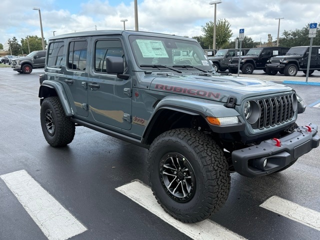 This Wrangler is well equipped with Convenience Group (Heated Front Seats, Heated Steering Wheel, and Universal Garage Door Opener), Quick Order Package 24Y Rubicon X (Acoustic Front Seat Area Carpet, Acoustic Laminated Front Door Glass, Alpine Premium Audio System, Body Color 3-Piece Hard Top, Body Color Rubicon Highline Flare, Freedom Panel Storage Bag, Leather Wrapped Park Brake Handle, Leather Wrapped Shift Knob, MOPAR Hardtop Headliner, MOPAR Hinge-Gate Reinforcement, Nappa Leather Seats, Power 4-Way Driver Lumbar Adjust, Power 4-Way Passenger Lumbar Adjust, Power Adjust 8-Way Driver Seat, Power Adjust 8-Way Front Passenger Seat, Premium Door Trim Panel, Rear Window Defroster, Rear Window Wiper/Washer, Steel Front Bumper, and Steel Rear Bumper), Safety Group (Auto High Beam Headlamp Control, Blind Spot & Cross Path Detection, and ParkSense Rear Park Assist System), Technology Group (12.3" Touchscreen Display, 4G LTE Wi-Fi Hot Spot, Apple CarPlay, Auto-Dimming Rear-View Mirror, Connected Travel & Traffic Services, Connectivity - US/Canada, Google Android Auto, GPS Navigation, HD Radio, Integrated Off-Road Camera, Integrated Voice Command w/Bluetooth, Radio: Uconnect 5 Nav w/12.3" Display, SiriusXM Radio Service, and SiriusXM w/360L), Trailer Tow Prep Package, Xtreme 35" Tire Package (35" Tire Suspension, 97 MPH Vehicle Max Speed Calibration, Anti-Lock 4-Wheel Disc Perf Brakes, and Wheels: 17" x 8" Machined w/Black Pockets), 4-Wheel Disc Brakes, 8 Speakers, ABS brakes, Air Conditioning, Alloy wheels, AM/FM radio: SiriusXM, Apple CarPlay/Android Auto, Automatic temperature control, Aux Battery, Auxiliary Switches, Brake assist, Class II Receiver Hitch, Cloth Low-Back Bucket Seats, Compass, Delay-off headlights, Driver door bin, Driver vanity mirror, Dual front impact airbags, Dual front side impact airbags, Electronic Stability Control, Emergency communication system: Jeep Connect, Front anti-roll bar, Front Bucket Seats, Front Center Armrest w/Storage, Front dual zone A/C, Front fog lights, Front reading lights, Fully automatic headlights, Heated door mirrors, Illuminated entry, Integrated roll-over protection, Low tire pressure warning, MOPAR All-Weather Floor Mats, Non-Lock Fuel Cap w/o Discriminator, Occupant sensing airbag, Outside temperature display, Overhead airbag, Panic alarm, ParkView Rear Back-Up Camera, Passenger door bin, Passenger vanity mirror, Performance Suspension, Power door mirrors, Power steering, Power Top Quarter Window Storage Bag, Power windows, Radio data system, Radio: Uconnect 5 w/12.3" Display, Rear anti-roll bar, Rear reading lights, Remote keyless entry, Removable Rear Quarter Windows, Security system, Sky 1-Touch Power Top, Speed control, Split folding rear seat, Steering wheel mounted audio controls, Stop-Start Dual Battery System, Tachometer, Telescoping steering wheel, Tilt steering wheel, Traction control, Trip computer, Variably intermittent wipers, Voltmeter, Wheel Flare Extensions, and Wheels: 17" x 7.5" Machined/Painted Black. Not all customers qualify for all rebates. See dealer for details. Price includes: $1500 - 2025 National Bonus Cash . Exp. 11/03/2025 $2500 - 2025 National Retail Bonus Cash . Exp. 11/03/2025