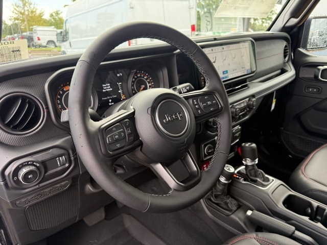 This Wrangler is well equipped with Convenience Group (Heated Front Seats, Heated Steering Wheel, and Universal Garage Door Opener), Quick Order Package 24Y Rubicon X (Acoustic Front Seat Area Carpet, Acoustic Laminated Front Door Glass, Alpine Premium Audio System, Body Color 3-Piece Hard Top, Body Color Rubicon Highline Flare, Freedom Panel Storage Bag, Leather Wrapped Park Brake Handle, Leather Wrapped Shift Knob, MOPAR Hardtop Headliner, MOPAR Hinge-Gate Reinforcement, Nappa Leather Seats, Power 4-Way Driver Lumbar Adjust, Power 4-Way Passenger Lumbar Adjust, Power Adjust 8-Way Driver Seat, Power Adjust 8-Way Front Passenger Seat, Premium Door Trim Panel, Rear Window Defroster, Rear Window Wiper/Washer, Steel Front Bumper, and Steel Rear Bumper), Safety Group (Auto High Beam Headlamp Control, Blind Spot & Cross Path Detection, and ParkSense Rear Park Assist System), Technology Group (12.3" Touchscreen Display, 4G LTE Wi-Fi Hot Spot, Apple CarPlay, Auto-Dimming Rear-View Mirror, Connected Travel & Traffic Services, Connectivity - US/Canada, Google Android Auto, GPS Navigation, HD Radio, Integrated Off-Road Camera, Integrated Voice Command w/Bluetooth, Radio: Uconnect 5 Nav w/12.3" Display, SiriusXM Radio Service, and SiriusXM w/360L), Trailer Tow Prep Package, Xtreme 35" Tire Package (35" Tire Suspension, 97 MPH Vehicle Max Speed Calibration, Anti-Lock 4-Wheel Disc Perf Brakes, and Wheels: 17" x 8" Machined w/Black Pockets), 4-Wheel Disc Brakes, 8 Speakers, ABS brakes, Air Conditioning, Alloy wheels, AM/FM radio: SiriusXM, Apple CarPlay/Android Auto, Automatic temperature control, Aux Battery, Auxiliary Switches, Brake assist, Class II Receiver Hitch, Cloth Low-Back Bucket Seats, Compass, Delay-off headlights, Driver door bin, Driver vanity mirror, Dual front impact airbags, Dual front side impact airbags, Electronic Stability Control, Emergency communication system: Jeep Connect, Front anti-roll bar, Front Bucket Seats, Front Center Armrest w/Storage, Front dual zone A/C, Front fog lights, Front reading lights, Fully automatic headlights, Heated door mirrors, Illuminated entry, Integrated roll-over protection, Low tire pressure warning, MOPAR All-Weather Floor Mats, Non-Lock Fuel Cap w/o Discriminator, Occupant sensing airbag, Outside temperature display, Overhead airbag, Panic alarm, ParkView Rear Back-Up Camera, Passenger door bin, Passenger vanity mirror, Performance Suspension, Power door mirrors, Power steering, Power Top Quarter Window Storage Bag, Power windows, Radio data system, Radio: Uconnect 5 w/12.3" Display, Rear anti-roll bar, Rear reading lights, Remote keyless entry, Removable Rear Quarter Windows, Security system, Sky 1-Touch Power Top, Speed control, Split folding rear seat, Steering wheel mounted audio controls, Stop-Start Dual Battery System, Tachometer, Telescoping steering wheel, Tilt steering wheel, Traction control, Trip computer, Variably intermittent wipers, Voltmeter, Wheel Flare Extensions, and Wheels: 17" x 7.5" Machined/Painted Black. Not all customers qualify for all rebates. See dealer for details. Price includes: $1500 - 2025 National Bonus Cash . Exp. 11/03/2025 $2500 - 2025 National Retail Bonus Cash . Exp. 11/03/2025