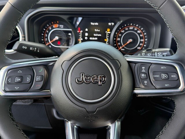 This Wrangler is well equipped with Quick Order Package 24G Sahara, Technology Group (12.3" Touchscreen Display, 4G LTE Wi-Fi Hot Spot, Apple CarPlay, Auto-Dimming Rear-View Mirror, Connected Travel & Traffic Services, Connectivity - US/Canada, Google Android Auto, GPS Navigation, HD Radio, Integrated Off-Road Camera, Integrated Voice Command w/Bluetooth, Radio: Uconnect 5 Nav w/12.3" Display, SiriusXM Radio Service, SiriusXM w/360L, and Universal Garage Door Opener), 110 MPH Vehicle Max Speed Calibration, 3.45 Overall Top Gear Ratio, 4-Wheel Disc Brakes, 8 Speakers, ABS brakes, Air Conditioning, Alloy wheels, Alpine Premium Audio System, AM/FM radio: SiriusXM, Apple CarPlay/Android Auto, Automatic temperature control, Aux Battery, Brake assist, Cloth Low-Back Bucket Seats, Compass, Delay-off headlights, Driver door bin, Driver vanity mirror, Dual front impact airbags, Dual front side impact airbags, Electronic Stability Control, Emergency communication system: Jeep Connect, Front anti-roll bar, Front Bucket Seats, Front Center Armrest w/Storage, Front dual zone A/C, Front fog lights, Front reading lights, Fully automatic headlights, Heated door mirrors, Heated front seats, Heated steering wheel, Heavy Duty Suspension w/Gas Shocks, Illuminated entry, Integrated Center Stack Radio, Integrated roll-over protection, Low tire pressure warning, MOPAR All-Weather Floor Mats, Non-Lock Fuel Cap w/o Discriminator, Occupant sensing airbag, Outside temperature display, Overhead airbag, Panic alarm, ParkView Rear Back-Up Camera, Passenger door bin, Passenger vanity mirror, Power door mirrors, Power steering, Power Top Quarter Window Storage Bag, Power windows, Radio data system, Radio: Uconnect 5 w/12.3" Display, Rear anti-roll bar, Rear reading lights, Rear Window Defroster, Rear Window Wiper/Washer, Remote keyless entry, Removable Rear Quarter Windows, Security system, Sky 1-Touch Power Top, Speed control, Split folding rear seat, Steering wheel mounted audio controls, Stop-Start Dual Battery System, Tachometer, Telescoping steering wheel, Tilt steering wheel, Traction control, Trip computer, Variably intermittent wipers, Voltmeter, Wheels: 18" x 7.5 Machine/Painted Gray, and Wheels: 18" x 7.5" Machine/Painted Gray. Not all customers qualify for all rebates. See dealer for details. Price includes: $2500 - 2025 National Retail Bonus Cash . Exp. 11/03/2025