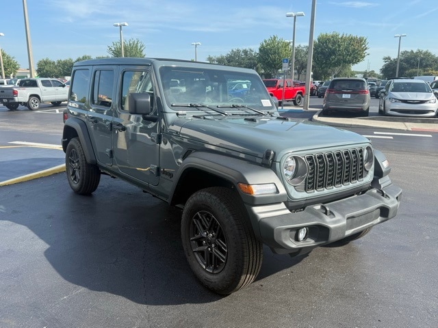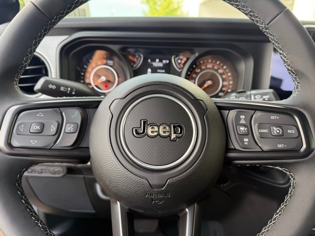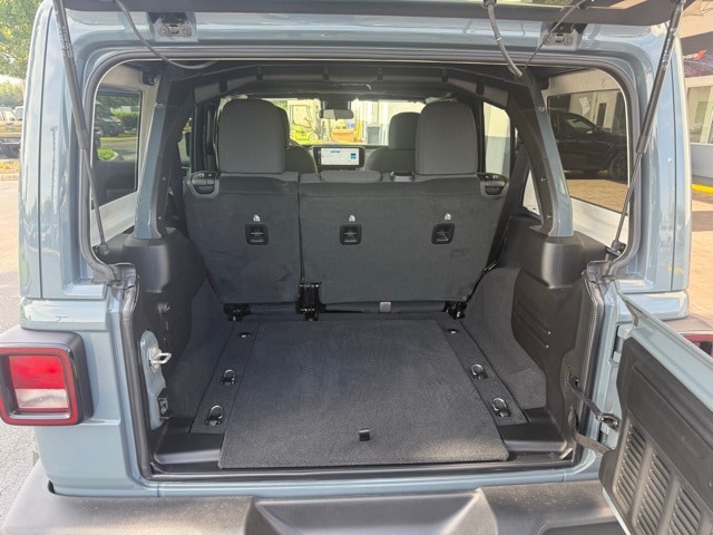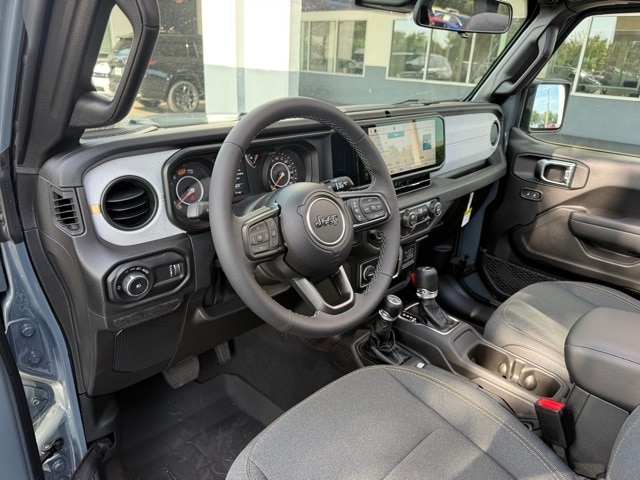 This Wrangler is well equipped with Quick Order Package 24S Sport S (Advanced Brake Assist, Automatic Headlamps, Corning Gorilla Glass, Deep Tint Sunscreen Windows, Enhanced Adaptive Cruise Control, Full Speed Forward Collision Warning Plus, Power Heated Mirrors, Premium Wrapped Steering Wheel, Security Alarm, Sun Visors w/Illuminated Vanity Mirrors, and Wheels: 17" x 7.5" Gray), 110 MPH Vehicle Max Speed Calibration, 3.45 Overall Top Gear Ratio, 4-Wheel Disc Brakes, 8 Speakers, ABS brakes, Air Conditioning, AM/FM radio: SiriusXM, Apple CarPlay/Android Auto, Aux Battery, Brake assist, Cloth Low-Back Bucket Seats, Compass, Delay-off headlights, Driver door bin, Driver vanity mirror, Dual front impact airbags, Dual front side impact airbags, Electronic Stability Control, Front anti-roll bar, Front Bucket Seats, Front Center Armrest w/Storage, Front fog lights, Front reading lights, Illuminated entry, Integrated roll-over protection, Low tire pressure warning, MOPAR All-Weather Floor Mats, Non-Lock Fuel Cap w/o Discriminator, Normal Duty Suspension, Occupant sensing airbag, Outside temperature display, Overhead airbag, Panic alarm, ParkView Rear Back-Up Camera, Passenger door bin, Passenger vanity mirror, Power steering, Power Top Quarter Window Storage Bag, Power windows, Radio data system, Radio: Uconnect 5 w/12.3" Display, Rear anti-roll bar, Rear reading lights, Rear Window Defroster, Rear Window Wiper/Washer, Remote keyless entry, Removable Rear Quarter Windows, Sky 1-Touch Power Top, Speed control, Split folding rear seat, Steering wheel mounted audio controls, Stop-Start Dual Battery System, Tachometer, Telescoping steering wheel, Tilt steering wheel, Traction control, Trip computer, Variably intermittent wipers, and Wheels: 17" x 7.5" Black Steel Styled. Not all customers qualify for all rebates. See dealer for details. Price includes: $2500 - 2025 National Retail Bonus Cash . Exp. 11/03/2025