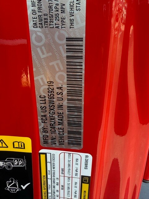 This Wrangler is well equipped with Convenience Group (Heated Front Seats, Heated Steering Wheel, and Universal Garage Door Opener), Quick Order Package 24Y Rubicon X (Acoustic Front Seat Area Carpet, Acoustic Laminated Front Door Glass, Alpine Premium Audio System, Body Color 3-Piece Hard Top, Body Color Rubicon Highline Flare, Freedom Panel Storage Bag, Leather Wrapped Park Brake Handle, Leather Wrapped Shift Knob, MOPAR Hardtop Headliner, MOPAR Hinge-Gate Reinforcement, Nappa Leather Seats, Power 4-Way Driver Lumbar Adjust, Power 4-Way Passenger Lumbar Adjust, Power Adjust 8-Way Driver Seat, Power Adjust 8-Way Front Passenger Seat, Premium Door Trim Panel, Rear Window Defroster, Rear Window Wiper/Washer, Steel Front Bumper, and Steel Rear Bumper), Safety Group (Auto High Beam Headlamp Control, Blind Spot & Cross Path Detection, and ParkSense Rear Park Assist System), Technology Group (12.3" Touchscreen Display, 4G LTE Wi-Fi Hot Spot, Apple CarPlay, Auto-Dimming Rear-View Mirror, Connected Travel & Traffic Services, Connectivity - US/Canada, Google Android Auto, GPS Navigation, HD Radio, Integrated Off-Road Camera, Integrated Voice Command w/Bluetooth, Radio: Uconnect 5 Nav w/12.3" Display, SiriusXM Radio Service, and SiriusXM w/360L), Trailer Tow Prep Package, Xtreme 35" Tire Package (35" Tire Suspension, 97 MPH Vehicle Max Speed Calibration, Anti-Lock 4-Wheel Disc Perf Brakes, and Wheels: 17" x 8" Machined w/Black Pockets), 4-Wheel Disc Brakes, 8 Speakers, ABS brakes, Air Conditioning, Alloy wheels, AM/FM radio: SiriusXM, Apple CarPlay/Android Auto, Automatic temperature control, Aux Battery, Auxiliary Switches, Brake assist, Class II Receiver Hitch, Cloth Low-Back Bucket Seats, Compass, Delay-off headlights, Driver door bin, Driver vanity mirror, Dual front impact airbags, Dual front side impact airbags, Electronic Stability Control, Emergency communication system: Jeep Connect, Front anti-roll bar, Front Bucket Seats, Front Center Armrest w/Storage, Front dual zone A/C, Front fog lights, Front reading lights, Fully automatic headlights, Heated door mirrors, Illuminated entry, Integrated roll-over protection, Low tire pressure warning, MOPAR All-Weather Floor Mats, Non-Lock Fuel Cap w/o Discriminator, Occupant sensing airbag, Outside temperature display, Overhead airbag, Panic alarm, ParkView Rear Back-Up Camera, Passenger door bin, Passenger vanity mirror, Performance Suspension, Power door mirrors, Power steering, Power Top Quarter Window Storage Bag, Power windows, Radio data system, Radio: Uconnect 5 w/12.3" Display, Rear anti-roll bar, Rear reading lights, Remote keyless entry, Removable Rear Quarter Windows, Security system, Sky 1-Touch Power Top, Speed control, Split folding rear seat, Steering wheel mounted audio controls, Stop-Start Dual Battery System, Tachometer, Telescoping steering wheel, Tilt steering wheel, Traction control, Trip computer, Variably intermittent wipers, Voltmeter, Wheel Flare Extensions, and Wheels: 17" x 7.5" Machined/Painted Black. Not all customers qualify for all rebates. See dealer for details. Price includes: $2500 - 2025 National Retail Bonus Cash . Exp. 11/03/2025