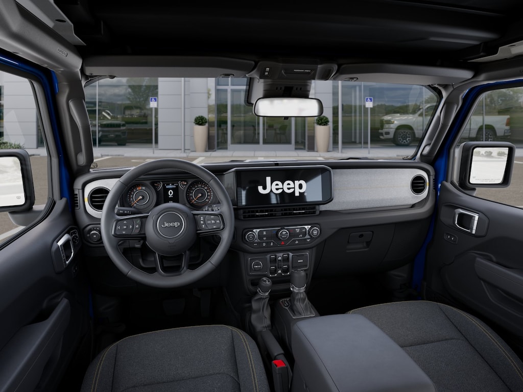 This Wrangler is well equipped with Quick Order Package 24S Sport S (Advanced Brake Assist, Automatic Headlamps, Corning Gorilla Glass, Deep Tint Sunscreen Windows, Enhanced Adaptive Cruise Control, Full Speed Forward Collision Warning Plus, Power Heated Mirrors, Premium Wrapped Steering Wheel, Security Alarm, Sun Visors w/Illuminated Vanity Mirrors, and Wheels: 17" x 7.5" Gray), 110 MPH Vehicle Max Speed Calibration, 3.45 Overall Top Gear Ratio, 4-Wheel Disc Brakes, 8 Speakers, ABS brakes, Air Conditioning, AM/FM radio: SiriusXM, Apple CarPlay/Android Auto, Aux Battery, Brake assist, Cloth Low-Back Bucket Seats, Compass, Delay-off headlights, Driver door bin, Driver vanity mirror, Dual front impact airbags, Dual front side impact airbags, Electronic Stability Control, Front anti-roll bar, Front Bucket Seats, Front Center Armrest w/Storage, Front fog lights, Front reading lights, Illuminated entry, Integrated roll-over protection, Low tire pressure warning, MOPAR All-Weather Floor Mats, Non-Lock Fuel Cap w/o Discriminator, Normal Duty Suspension, Occupant sensing airbag, Outside temperature display, Overhead airbag, Panic alarm, ParkView Rear Back-Up Camera, Passenger door bin, Passenger vanity mirror, Power steering, Power Top Quarter Window Storage Bag, Power windows, Radio data system, Radio: Uconnect 5 w/12.3" Display, Rear anti-roll bar, Rear reading lights, Rear Window Defroster, Rear Window Wiper/Washer, Remote keyless entry, Removable Rear Quarter Windows, Sky 1-Touch Power Top, Speed control, Split folding rear seat, Steering wheel mounted audio controls, Stop-Start Dual Battery System, Tachometer, Telescoping steering wheel, Tilt steering wheel, Traction control, Trip computer, Variably intermittent wipers, and Wheels: 17" x 7.5" Black Steel Styled. Not all customers qualify for all rebates. See dealer for details. Price includes: $1500 - 2025 National Bonus Cash . Exp. 12/01/2025 $2500 - 2025 National Retail Bonus Cash . Exp. 12/01/2025