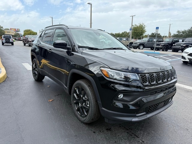 This Compass is well equipped with 17" x 7" Aluminum Wheels, 3.73 Final Drive Ratio, 4-Wheel Disc Brakes, 6 Speakers, ABS brakes, Air Conditioning, Alloy wheels, AM/FM radio: SiriusXM with 360L, Anti-whiplash front head restraints, Apple CarPlay/Android Auto, Auto High-beam Headlights, Automatic temperature control, Brake assist, Bumpers: body-colour, Compass, Delay-off headlights, Driver door bin, Driver vanity mirror, Dual front impact airbags, Dual front side impact airbags, Electronic Stability Control, Emergency communication system: SiriusXM Guardian, Four wheel independent suspension, Front anti-roll bar, Front Bucket Seats, Front fog lights, Front reading lights, Fully automatic headlights, Heated door mirrors, Heated front seats, Heated steering wheel, Illuminated entry, Knee airbag, Leather Shift Knob, Leather steering wheel, Low tire pressure warning, Occupant sensing airbag, Outside temperature display, Overhead airbag, Overhead console, Panic alarm, ParkView Rear Back-Up Camera, Passenger door bin, Passenger vanity mirror, Power door mirrors, Power steering, Power windows, Premium audio system: UConnect 5, Premium Cloth/Vinyl Bucket Seats, Radio: Uconnect 5 w/8.4" Display, Rear anti-roll bar, Rear window defroster, Rear window wiper, Remote keyless entry, Security system, Speed control, Split folding rear seat, Spoiler, Steering wheel mounted audio controls, Tachometer, Telescoping steering wheel, Tilt steering wheel, Traction control, Variably intermittent wipers, and Wheels: 18" x 7" Gloss Black Painted Aluminum. Not all customers qualify for all rebates. See dealer for details. Price includes: $500 - 2026 National Retail Bonus Cash . Exp. 11/03/2025