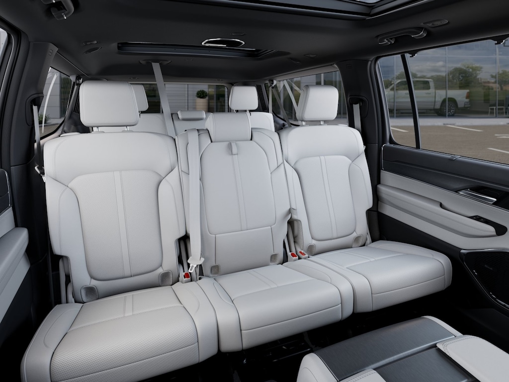 With seating for up to 8 passengers and a spacious, premium cabin, the Grand Wagoneer L is designed to accommodate your entire family in uncompromising comfort. The advanced safety features, including Automatic Emergency Braking, Blind Spot Monitoring, and Adaptive Cruise Control, provide added peace of mind on every journey.