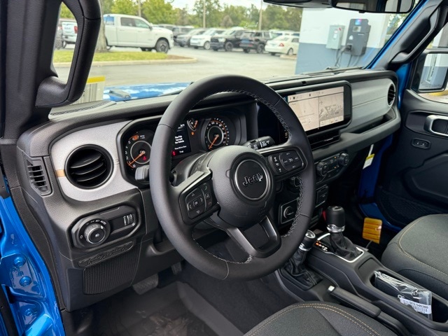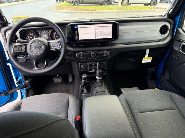 This Wrangler is well equipped with Quick Order Package 22S Sport S (Advanced Brake Assist, Automatic Headlamps, Corning Gorilla Glass, Deep Tint Sunscreen Windows, Enhanced Adaptive Cruise Control, Full Speed Forward Collision Warning Plus, Power Heated Mirrors, Premium Wrapped Steering Wheel, Security Alarm, Sun Visors with Illuminated Vanity Mirrors, and Wheels: 17" x 7.5" Gray), 12.3" Touchscreen Display, 3.45 Overall Top Gear Ratio, 4-Wheel Disc Brakes, 4G LTE Wi-Fi Hot Spot, 8 Speakers, ABS brakes, Air Conditioning, AM/FM radio: SiriusXM with 360L, Apple CarPlay, Apple CarPlay/Android Auto, Aux Battery, Black 3-Piece Hard Top, Brake assist, Cloth Low-Back Bucket Seats, Compass, Connectivity - US/Canada, Delay-off headlights, Driver door bin, Driver vanity mirror, Dual front impact airbags, Dual front side impact airbags, Electronic Stability Control, For More Info, Call 800-643-2112, Freedom Panel Storage Bag, Front anti-roll bar, Front Bucket Seats, Front Center Armrest w/Storage, Front fog lights, Front reading lights, Google Android Auto, Illuminated entry, Integrated Center Stack Radio, Integrated roll-over protection, Low tire pressure warning, MOPAR All-Weather Floor Mats, Myflexcare Service Plan, Non-Lock Fuel Cap Without Discriminator, Normal Duty Suspension, Occupant sensing airbag, Outside temperature display, Overhead airbag, Panic alarm, ParkView Rear Back-Up Camera, Passenger door bin, Passenger vanity mirror, Power steering, Power windows, Radio data system, Radio: Uconnect 5 with 12.3" Display, Rear anti-roll bar, Rear reading lights, Rear Window Defroster, Rear Window Wiper/Washer, Remote keyless entry, SiriusXM Radio Service, SiriusXM with 360L, Speed control, Split folding rear seat, Steering wheel mounted audio controls, Stop-Start Dual Battery System, Tachometer, Telescoping steering wheel, Tilt steering wheel, Traction control, Trip computer, Variably intermittent wipers, and Wheels: 17" x 7.5" Black Steel Styled. Not all customers qualify for all rebates. See dealer for details. Price includes: $1500 - 2026 National Select Inventory Bonus Cash . Exp. 01/05/2026