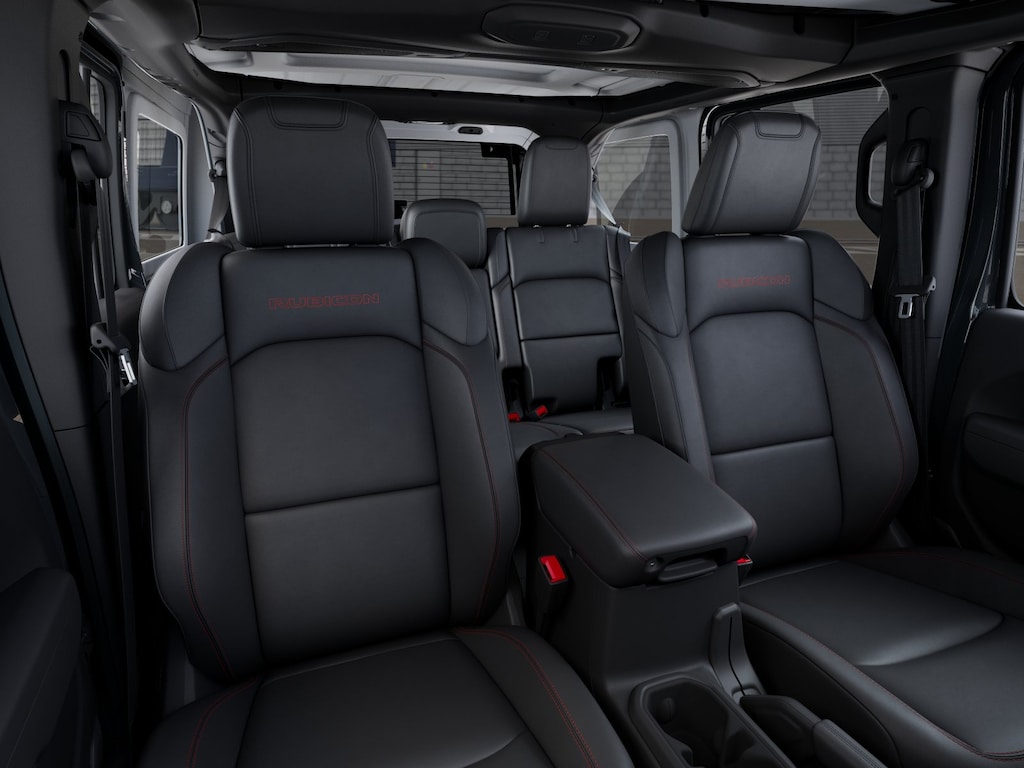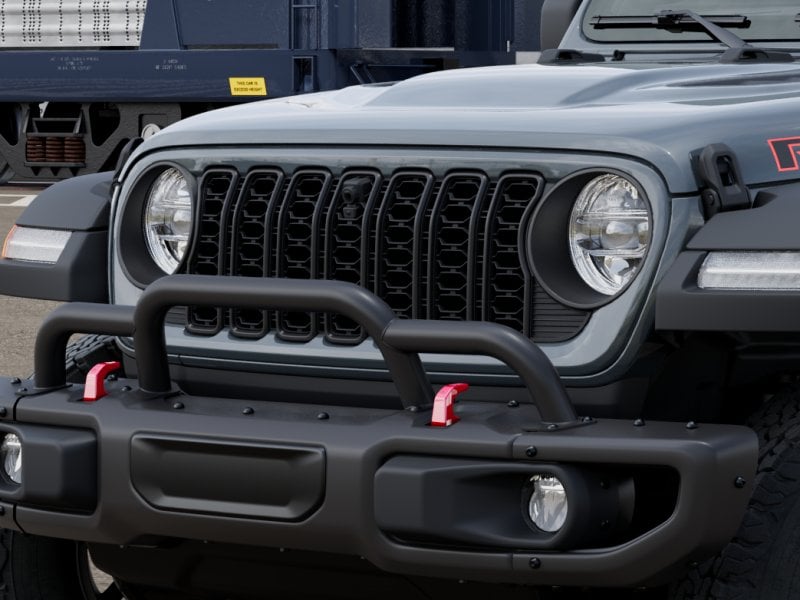 This Wrangler is well equipped with Convenience Group (Heated Front Seats, Heated Steering Wheel, and Universal Garage Door Opener), Quick Order Package 24R Rubicon, Safety Group (Auto High Beam Headlamp Control, Blind Spot and Cross Path Detection, and ParkSense Rear Park Assist System), Steel Bumper Group (Steel Front Bumper and Steel Rear Bumper), Technology Group (12.3" Touchscreen Display, 4G LTE Wi-Fi Hot Spot, Apple CarPlay, Auto-Dimming Rear-View Mirror, Connected Travel and Traffic Services, Connectivity - US/Canada, For More Info, Call 800-643-2112, Google Android Auto, GPS Navigation, HD Radio, Integrated Center Stack Radio, Integrated Off-Road Camera, Integrated Voice Command with Bluetooth, Radio: Uconnect 5 Navigation with 12.3" Display, SiriusXM Radio Service, and SiriusXM with 360L), 4-Wheel Disc Brakes, 4.10 Rear Axle Ratio, 8 Speakers, ABS brakes, Air Conditioning, Alloy wheels, Alpine Premium Audio System, AM/FM radio: SiriusXM with 360L, Apple CarPlay/Android Auto, Automatic temperature control, Aux Battery, Auxiliary Switches, Body Color 3-Piece Hard Top, Brake assist, Class II Receiver Hitch, Cloth Low-Back Bucket Seats, Compass, Delay-off headlights, Driver door bin, Driver vanity mirror, Dual front impact airbags, Dual front side impact airbags, Electronic Stability Control, Emergency communication system: Jeep Connect, Freedom Panel Storage Bag, Front anti-roll bar, Front Bucket Seats, Front Center Armrest w/Storage, Front dual zone A/C, Front fog lights, Front reading lights, Fully automatic headlights, Heated door mirrors, Illuminated entry, Integrated roll-over protection, Low tire pressure warning, MOPAR All-Weather Floor Mats, MOPAR Grille Guard Triple Loop, Myflexcare Service Plan, Non-Lock Fuel Cap Without Discriminator, Occupant sensing airbag, Outside temperature display, Overhead airbag, Panic alarm, ParkView Rear Back-Up Camera, Passenger door bin, Passenger vanity mirror, Performance Suspension, Power door mirrors, Power steering, Power windows, Radio data system, Radio: Uconnect 5 with 12.3" Display, Rear anti-roll bar, Rear reading lights, Rear Window Defroster, Rear Window Wiper/Washer, Remote keyless entry, Security system, Speed control, Split folding rear seat, Steering wheel mounted audio controls, Stop-Start Dual Battery System, Tachometer, Telescoping steering wheel, Tilt steering wheel, Traction control, Trip computer, Variably intermittent wipers, Voltmeter, and Wheels: 17" x 7.5" Machined/Painted Black.