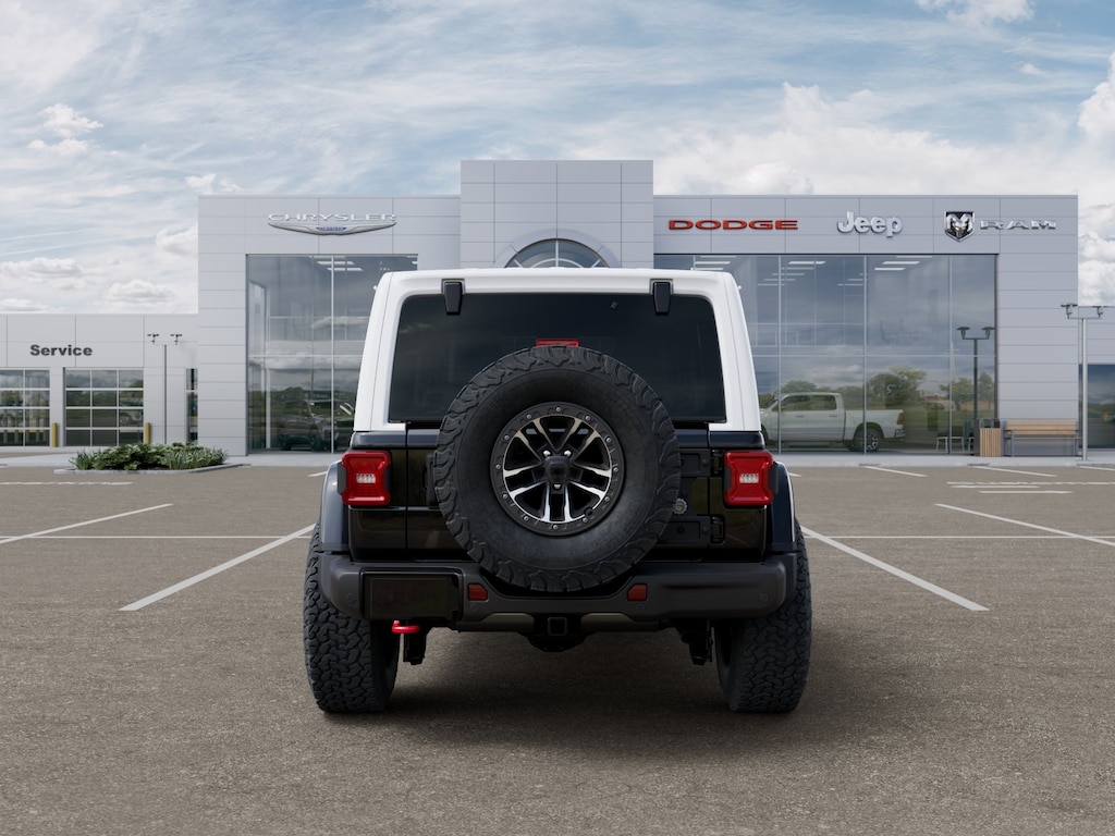 This Wrangler is well equipped with Quick Order Package 22Y Rubicon X (12.3" Touchscreen Display, 4G LTE Wi-Fi Hot Spot, Acoustic Front Seat Area Carpet, Acoustic Laminated Front Door Glass, Alpine Premium Audio System, Apple CarPlay, Auto High Beam Headlamp Control, Auto-Dimming Rear-View Mirror, Blind Spot and Cross Path Detection, Body Color 3-Piece Hard Top, Body Color Rubicon Highline Flare, Connected Travel and Traffic Services, Connectivity - US/Canada, Freedom Panel Storage Bag, Google Android Auto, HD Radio, Heated Front Seats, Heated Steering Wheel, Integrated Off-Road Camera, Integrated Voice Command with Bluetooth, Leather Wrapped Park Brake Handle, Leather Wrapped Shift Knob, MOPAR Hardtop Headliner, Nappa Leather Seats, No Soft Top, ParkSense Rear Park Assist System, Power 4-Way Driver Lumbar Adjust, Power 4-Way Passenger Lumbar Adjust, Power Adjust 8-Way Driver Seat, Power Adjust 8-Way Front Passenger Seat, Premium Door Trim Panel, Radio: Uconnect 5 Navigation with 12.3" Display, Rear Window Defroster, Rear Window Wiper/Washer, SiriusXM with 360L, Steel Front Bumper, Steel Rear Bumper, and Universal Garage Door Opener), Quick Order Package 23Y Rubicon X, Steel Performance Hood Package (Performance Hood), Trailer Tow and Auxiliary Switch Group (Auxiliary Switches and Class II Receiver Hitch), Trailer Tow Prep Package, Whitecap Package (1941 Side Decals, Gray/Black Trail Rated Badge, Matte Black Jeep Badge, White 3-Piece Hard Top, and White Grille with Neutral Gray Metallic Rings), Xtreme 35 Tire Package (35" Tire Suspension, Anti-Lock 4-Wheel Disc Perf Brakes, MOPAR Hinge-Gate Reinforcement, MOPAR Jack Spacer, MOPAR Tire Relocation Kit, Wheel Flare Extensions, and Wheels: 17" x 8" Machined with Black Pockets), 4-Wheel Disc Brakes, 4:1 Rock-Trac Heavy Duty Full Time 4WD System, 8 Speakers, ABS brakes, Adaptive Cruise Control with Stop, Air Conditioning, Alloy wheels, AM/FM radio: SiriusXM with 360L, Apple CarPlay/Android Auto, Automatic temperature control, Aux Battery, Brake assist, Cloth Low-Back Bucket Seats, Compass, Delay-off headlights, Driver door bin, Driver vanity mirror, Dual front impact airbags, Dual front side impact airbags, Electronic Stability Control, Emergency communication system: Jeep Connect, For More Info, Call 800-643-2112, Front anti-roll bar, Front Bucket Seats, Front Center Armrest w/Storage, Front dual zone A/C, Front fog lights, Front reading lights, Fully automatic headlights, GPS Navigation, Heated door mirrors, Illuminated entry, Integrated Center Stack Radio, Integrated roll-over protection, Low tire pressure warning, MOPAR Grille Guard Triple Loop, Non-Lock Fuel Cap Without Discriminator, Occupant sensing airbag, Outside temperature display, Overhead airbag, Panic alarm, ParkView Rear Back-Up Camera, Passenger door bin, Passenger vanity mirror, Performance Suspension, Power door mirrors, Power steering, Power windows, Radio data system, Radio: Uconnect 5 with 12.3" Display, Rear anti-roll bar, Rear reading lights, Remote keyless entry, Remote Start System, Security system, Selec-Speed Control, SiriusXM Radio Service, Speed control, Split folding rear seat, Steering wheel mounted audio controls, Stop-Start Dual Battery Syst Not all customers qualify for all rebates. See dealer for details. Price includes: $1000 - 2026 National Retail Bonus Cash . Exp. 03/31/2026 $500 - 2026 National 2026 First Responder Bonus Cash . Exp
