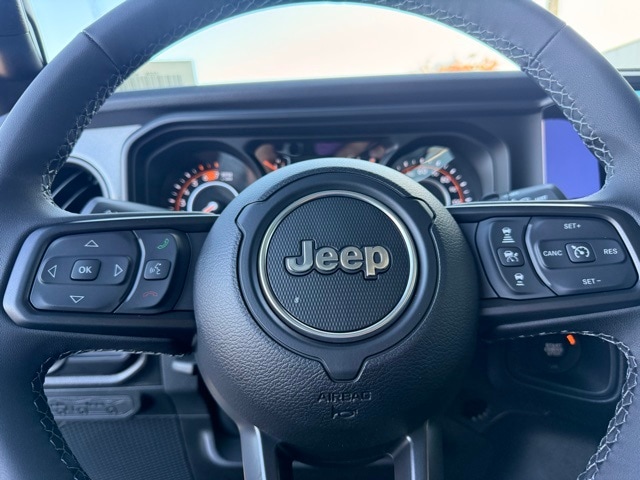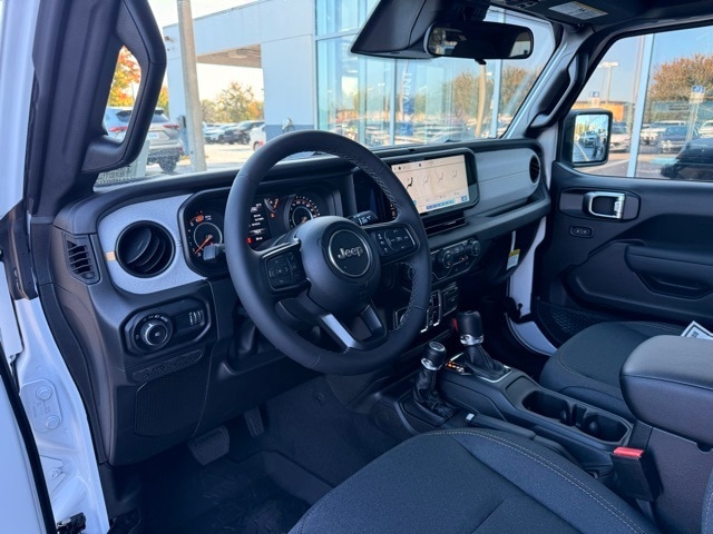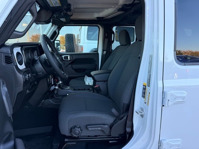 This Wrangler is well equipped with Quick Order Package 24S Sport S (Advanced Brake Assist, Automatic Headlamps, Corning Gorilla Glass, Deep Tint Sunscreen Windows, Enhanced Adaptive Cruise Control, Full Speed Forward Collision Warning Plus, Power Heated Mirrors, Premium Wrapped Steering Wheel, Security Alarm, Sun Visors with Illuminated Vanity Mirrors, and Wheels: 17" x 7.5" Gray), 12.3" Touchscreen Display, 3.45 Overall Top Gear Ratio, 4-Wheel Disc Brakes, 4G LTE Wi-Fi Hot Spot, 8 Speakers, ABS brakes, Air Conditioning, AM/FM radio: SiriusXM with 360L, Apple CarPlay, Apple CarPlay/Android Auto, Aux Battery, Black 3-Piece Hard Top, Brake assist, Cloth Low-Back Bucket Seats, Compass, Connectivity - US/Canada, Delay-off headlights, Driver door bin, Driver vanity mirror, Dual front impact airbags, Dual front side impact airbags, Electronic Stability Control, For More Info, Call 800-643-2112, Freedom Panel Storage Bag, Front anti-roll bar, Front Bucket Seats, Front Center Armrest w/Storage, Front fog lights, Front reading lights, Google Android Auto, Illuminated entry, Integrated Center Stack Radio, Integrated roll-over protection, Low tire pressure warning, MOPAR All-Weather Floor Mats, Myflexcare Service Plan, Non-Lock Fuel Cap Without Discriminator, Normal Duty Suspension, Occupant sensing airbag, Outside temperature display, Overhead airbag, Panic alarm, ParkView Rear Back-Up Camera, Passenger door bin, Passenger vanity mirror, Power steering, Power windows, Radio data system, Radio: Uconnect 5 with 12.3" Display, Rear anti-roll bar, Rear reading lights, Rear Window Defroster, Rear Window Wiper/Washer, Remote keyless entry, SiriusXM Radio Service, SiriusXM with 360L, Speed control, Split folding rear seat, Steering wheel mounted audio controls, Stop-Start Dual Battery System, Tachometer, Telescoping steering wheel, Tilt steering wheel, Traction control, Trip computer, Variably intermittent wipers, and Wheels: 17" x 7.5" Black Steel Styled.