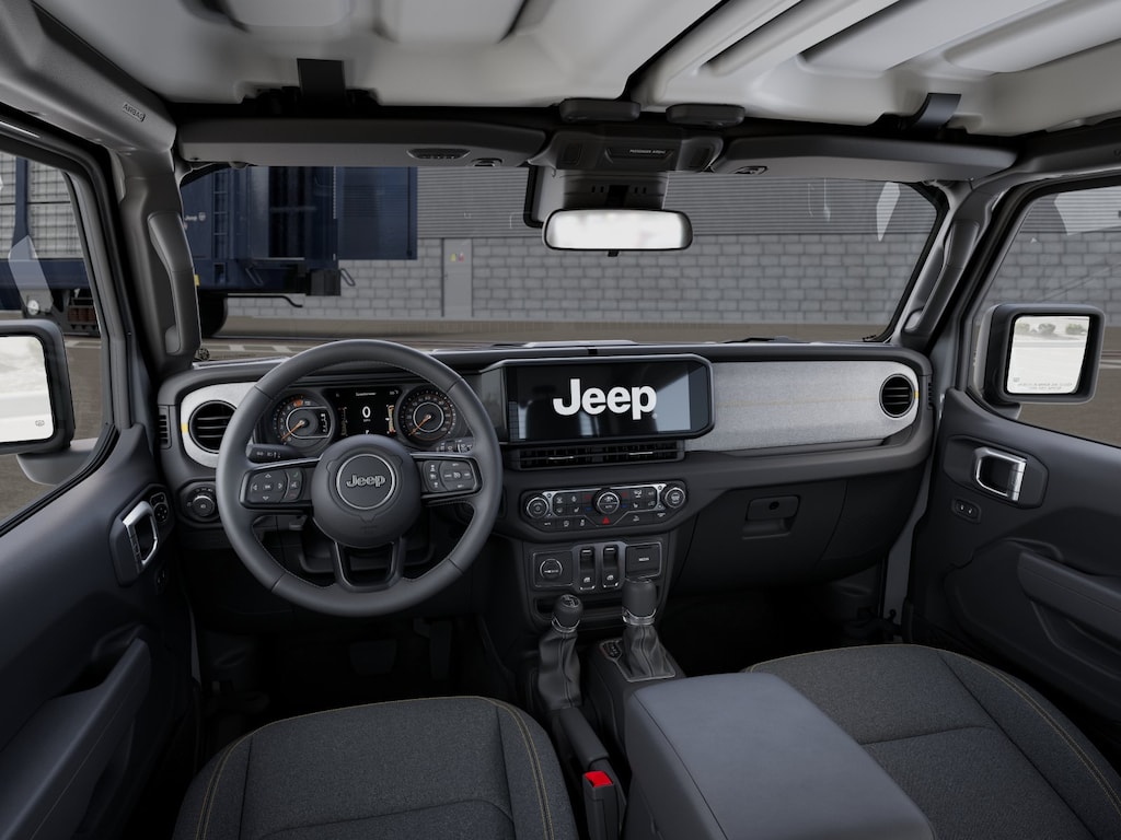 This Wrangler is well equipped with Convenience Group (2-Door Passive Entry, Front Door Locks, Air Conditioning with Auto Temp Control, Air Filtering, Cluster 7.0" TFT Color Display, Emergency/Assistance Call, Heated Front Seats, Heated Steering Wheel, and Universal Garage Door Opener), Quick Order Package 22S Sport S (Advanced Brake Assist, Automatic Headlamps, Corning Gorilla Glass, Deep Tint Sunscreen Windows, Enhanced Adaptive Cruise Control, Full Speed Forward Collision Warning Plus, Power Heated Mirrors, Premium Wrapped Steering Wheel, Security Alarm, Sun Visors with Illuminated Vanity Mirrors, and Wheels: 17" x 7.5" Gray), 12.3" Touchscreen Display, 3.45 Overall Top Gear Ratio, 4-Wheel Disc Brakes, 4G LTE Wi-Fi Hot Spot, 8 Speakers, ABS brakes, Air Conditioning, AM/FM radio: SiriusXM with 360L, Apple CarPlay, Apple CarPlay/Android Auto, Aux Battery, Black 3-Piece Hard Top, Brake assist, Cloth Low-Back Bucket Seats, Compass, Connectivity - US/Canada, Delay-off headlights, Driver door bin, Driver vanity mirror, Dual front impact airbags, Dual front side impact airbags, Electronic Stability Control, For More Info, Call 800-643-2112, Freedom Panel Storage Bag, Front anti-roll bar, Front Bucket Seats, Front Center Armrest w/Storage, Front fog lights, Front reading lights, Google Android Auto, Illuminated entry, Integrated Center Stack Radio, Integrated roll-over protection, Low tire pressure warning, Myflexcare Service Plan, Non-Lock Fuel Cap Without Discriminator, Normal Duty Suspension, Occupant sensing airbag, Outside temperature display, Overhead airbag, Panic alarm, ParkView Rear Back-Up Camera, Passenger door bin, Passenger vanity mirror, Power steering, Power windows, Radio data system, Radio: Uconnect 5 with 12.3" Display, Rear anti-roll bar, Rear reading lights, Rear Window Defroster, Rear Window Wiper/Washer, Remote keyless entry, SiriusXM Radio Service, SiriusXM with 360L, Speed control, Steering wheel mounted audio controls, Stop-Start Dual Battery System, Tachometer, Telescoping steering wheel, Tilt steering wheel, Traction control, Trip computer, Variably intermittent wipers, and Wheels: 17" x 7.5" Black Steel Styled.