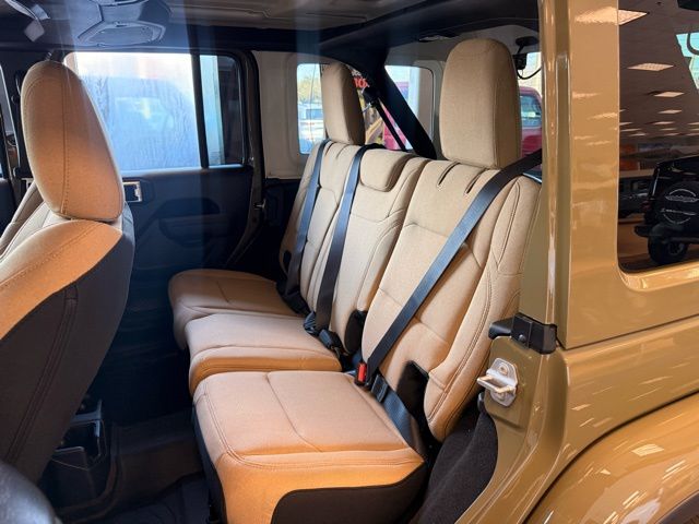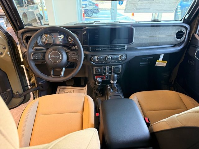 This Wrangler is well equipped with Convenience Group (2-Door Passive Entry, Front Door Locks, Air Conditioning with Auto Temp Control, Air Filtering, Cluster 7.0" TFT Color Display, Emergency/Assistance Call, Heated Front Seats, Heated Steering Wheel, and Universal Garage Door Opener), Quick Order Package 24H Willys 41 (4WD Willys '41 Swing Gate Decal, 7 and 4 Pin Wiring Harness, 97 MPH Vehicle Max Speed Calibration, Adaptive Cruise Control with Stop, Advanced Brake Assist, Automatic Headlamps, Auxiliary Switches, Body Color Grille with Gloss Black Rings, Body Color Rubicon Highline Flare, Class II Receiver Hitch, Cloth Low-Back Bucket Seats, Conventional Differential Front Axle, Corning Gorilla Glass, Dana M210 Wide HD Tube Front Axle, Dana M220 Wide Rear Axle, Daytime Running Lamps LED Accents, Deep Tint Sunscreen Windows, E-Locker Rear Axle, Front LED Fog Lamps, Full Speed Forward Collision Warning Plus, LED Premium Reflector Headlamps, MOPAR All-Weather Floor Mats, Off-Road Plus Mode, Power Heated Mirrors, Premium Tan Sunrider Soft Top, Premium Wrapped Steering Wheel, Security Alarm, Steel Front Bumper, Steel Rear Bumper, Sun Visors with Illuminated Vanity Mirrors, Wheels: 17" x 7.5" Fully Painted, Willy's Suspension, Willys '41 Retro Edition Buzz Model, Willys '41 Retro Edition Hood Decal, Willys '41 Retro Edition Tailgate Plaque, Willys '41 Retro Edition Wrangler Decal, Willys '41 Retro Shift Bezel Insert, and Willys '41 US Edition U.S. Hood Decal), Safety Group (Auto High Beam Headlamp Control, Blind Spot and Cross Path Detection, Injection Molded Black Rear Bumper, LED Taillamps, and ParkSense Rear Park Assist System), Steel Power Dome Hood Package (Power Dome Dual Vented Hood), 12.3" Touchscreen Display, 4-Wheel Disc Brakes, 4G LTE Wi-Fi Hot Spot, 8 Speakers, ABS brakes, Air Conditioning, AM/FM radio: SiriusXM with 360L, Apple CarPlay, Apple CarPlay/Android Auto, Aux Battery, Body Color 3-Piece Hard Top, Brake assist, Compass, Connectivity - US/Canada, Delay-off headlights, Driver door bin, Driver vanity mirror, Dual front impact airbags, Dual front side impact airbags, Electronic Stability Control, For More Info, Call 800-643-2112, Freedom Panel Storage Bag, Front anti-roll bar, Front Bucket Seats, Front Center Armrest w/Storage, Front fog lights, Front reading lights, Google Android Auto, Illuminated entry, Integrated Center Stack Radio, Integrated roll-over protection, Low tire pressure warning, Manufacture Statement of Origin, No Soft Top, Non-Lock Fuel Cap Without Discriminator, Normal Duty Suspension, Occupant sensing airbag, Outside temperature display, Overhead airbag, Panic alarm, ParkView Rear Back-Up Camera, Passenger door bin, Passenger vanity mirror, Power steering, Power windows, Radio data system, Radio: Uconnect 5 with 12.3" Display, Rear anti-roll bar, Rear reading lights, Rear Window Defroster, Rear Window Wiper/Washer, Remote keyless entry, SiriusXM Radio Service, SiriusXM with 360L, Speed control, Split folding rear seat, Steering wheel mounted audio controls, Stop-Start Dual Battery System, Tachometer, Telescoping steering wheel, Tilt steering wheel, Traction control, Trip computer, Variably intermittent wipers, and Wheels: 17" x 7.5" Black Steel Styled.