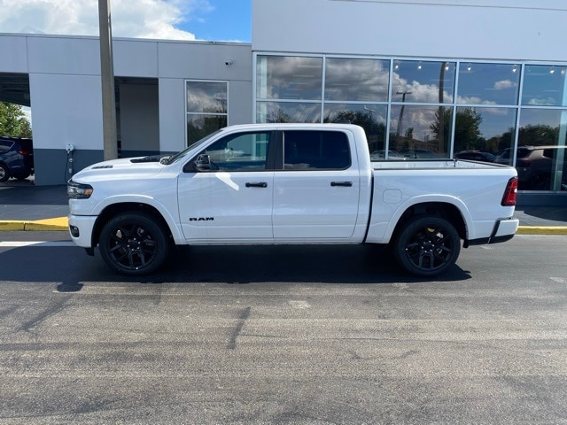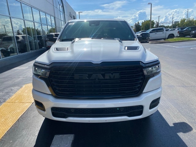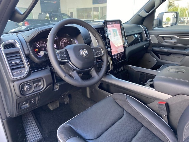This 1500 is well equipped with Advanced Safety Group II (12-Way/1-Way Trailer Connector, Active Driving Assist System, Drowsy Driver Detection, Evasive Steer Assist, Exterior Mirrors Approach Lamps, Intersection Collision Assist System, Surround View Camera System, and Traffic Sign Recognition), Laramie Level 2 Equipment Group (4G LTE Wi-Fi Hot Spot, Apple CarPlay, Cluster 12" TFT Color Display, Connected Travel & Traffic Services, Connectivity - US/Canada, Google Android Auto, GPS Antenna Input, GPS Navigation, harman/kardon 19 Speaker Premium Sound, HD Radio, Integrated Voice Command w/Bluetooth, Power Tailgate, Radio: Uconnect 5 Nav w/14.4" Display, Rain Sensitive Windshield Wipers, SiriusXM w/360L, and USB Host Flip), Night Edition (3 Rear Seat Head Restraints, 4 Way Front Headrests, Accent Color Door Handles, Accent Color Premium Power Mirrors, Accent Color Tailgate Handle, Anti-Spin Differential Rear Axle, Auto Power-Folding Mirrors, Auto-Dimming Exterior Driver Mirror, Black Exterior Truck Badging, Black Headlamp Bezels, Black Interior Accents, Black Painted Exterior Mirrors Caps, Black Tail Lamp Bezels, Body Color Front Bumper, Body Color Rear Bumper w/Step Pads, Bucket Seats, Convex Wide-Angle Exterior Mirror Insert, Driver Seat Memory, Dual Exhaust w/Black Tips, Exterior Mirrors Courtesy Lamps, Exterior Mirrors w/Heating Element, Exterior Mirrors w/Memory, Exterior Mirrors w/Supplemental Signals, Front Seat Back Map Pockets, Full Length Upgraded Floor Console, Grille Surround 3 Black Texture 2 Black, Heated Front Seats, Heated Second Row Seats, Heated Steering Wheel, Leather Trimmed Bucket Seats, Pirelli Brand Tires, Power 2-Way Driver Lumbar Adjust, Power 2-Way Passenger Lumbar Adjust, Power Adjust 8-Way Driver Seat, Power Adjust 8-Way Front Passenger Seat, Proximity Approach/Departure Lamps, RAM Grille Badge - Black, Rear 60/40 Folding Split Recline Seat, Sport Performance Hood, and Wheels: 22" x 9" Forged Aluminum), Quick Order Package 21H Laramie, 10 Speakers, 3.21 Rear Axle Ratio, 4-Wheel Disc Brakes, ABS brakes, Air Conditioning, Alloy wheels, AM/FM radio: SiriusXM with 360L, Apple CarPlay/Android Auto, Audio memory, Auto High-beam Headlights, Auto-dimming door mirrors, Auto-dimming Rear-View mirror, Automatic temperature control, Brake assist, Bumpers: chrome, Chrome Exterior Mirrors, Compass, Delay-off headlights, Dome Dual LED Reading Lamp, Driver door bin, Driver vanity mirror, Dual front impact airbags, Dual front side impact airbags, Dual-Pane Panoramic Sunroof, Electronic Stability Control, Exterior Parking Camera Rear, Front anti-roll bar, Front Center Armrest w/Storage, Front dual zone A/C, Front fog lights, Front reading lights, Front wheel independent suspension, Fully automatic headlights, Garage door transmitter, Heated door mirrors, Heated front seats, Heated rear seats, Heated steering wheel, Illuminated entry, Leather steering wheel, Leather Trim 40/20/40 Bench Seat, LED Dome/Reading Lamp, Low tire pressure warning, Manufacturer's Statement of Origin, Memory seat, MOPAR Front & Rear Rubber Floor Mats, Navigation System, Occupant sensing airbag, Outside temperature display, Overhead airbag, Overhead console, Panic alarm, Passenger do Not all customers qualify for all rebates. See dealer for details. Price includes: $2000 - 2025 National Overaged Select Inventory Bonus Cash. Exp. 11/03/2025 10% Msrp - 2025 National 10% Below MSRP . Exp