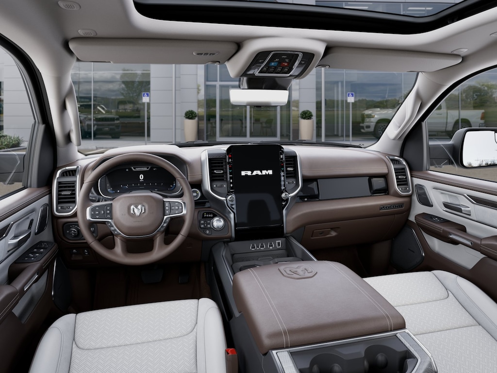 This 1500 is well equipped with Advanced Safety Group II (12-Way/1-Way Trailer Connector, Active Driving Assist System, Drowsy Driver Detection, Evasive Steer Assist, Exterior Mirrors Approach Lamps, Intersection Collision Assist System, Surround View Camera System, and Traffic Sign Recognition), Laramie Level 2 Equipment Group (14.4" Touchscreen Display, 4G LTE Wi-Fi Hot Spot, Apple CarPlay, Cluster 12" TFT Color Display, Connected Travel & Traffic Services, Connectivity - US/Canada, Google Android Auto, GPS Antenna Input, GPS Navigation, harman/kardon 19 Speaker Premium Sound, HD Radio, Integrated Voice Command w/Bluetooth, Power Tailgate, Radio: Uconnect 5 Nav w/14.4" Display, Rain Sensitive Windshield Wipers, SiriusXM w/360L, and USB Host Flip), Quick Order Package 21H Laramie, Technology Group (Heads-Up Display and LED CHMSL Lamp), 10 Speakers, 3 Rear Seat Head Restraints, 3.55 Rear Axle Ratio, 33 Gallon Fuel Tank, 4 Way Front Headrests, 4-Corner Air Suspension, 4-Wheel Disc Brakes, ABS brakes, Air Conditioning, Alloy wheels, AM/FM radio: SiriusXM with 360L, Apple CarPlay/Android Auto, Audio memory, Auto High-beam Headlights, Auto Power-Folding Mirrors, Auto-dimming door mirrors, Auto-Dimming Exterior Driver Mirror, Auto-dimming Rear-View mirror, Automatic temperature control, Brake assist, Bumpers: chrome, Chrome Exterior Mirrors, Compass, Convex Wide-Angle Exterior Mirror Insert, Delay-off headlights, Dome Dual LED Reading Lamp, Driver door bin, Driver Seat Memory, Driver vanity mirror, Dual front impact airbags, Dual front side impact airbags, Dual-Pane Panoramic Sunroof, Electronic Stability Control, Exterior Mirrors Courtesy Lamps, Exterior Mirrors w/Heating Element, Exterior Mirrors w/Memory, Exterior Mirrors w/Supplemental Signals, Front anti-roll bar, Front Center Armrest w/Storage, Front dual zone A/C, Front fog lights, Front reading lights, Front Seat Back Map Pockets, Front wheel independent suspension, Fully automatic headlights, Garage door transmitter, Heated door mirrors, Heated Front Seats, Heated front seats, Heated rear seats, Heated Steering Wheel, Heated steering wheel, Illuminated entry, Leather steering wheel, Leather Trim 40/20/40 Bench Seat, LED Dome/Reading Lamp, Low tire pressure warning, Manufacturer's Statement of Origin, Memory seat, MOPAR Front & Rear Rubber Floor Mats, Navigation System, Occupant sensing airbag, Outside temperature display, Overhead airbag, Overhead console, Panic alarm, ParkView Rear Back-Up Camera, Passenger door bin, Passenger vanity mirror, Power 2-Way Driver Lumbar Adjust, Power 2-Way Passenger Lumbar Adjust, Power Adjust 8-Way Front Passenger Seat, Power door mirrors, Power driver seat, Power passenger seat, Power steering, Power windows, Radio data system, Radio: Uconnect 5 Nav w/12.0" Display, RAM Grille Badge - Chrome, Rear anti-roll bar, Rear reading lights, Rear seat center armrest, Rear step bumper, Remote keyless entry, Security system, Speed control, Split folding rear seat, Steering wheel mounted audio controls, Tachometer, Telescoping steering wheel, Tilt steering wheel, Traction control, Trip computer, Turn signal indicator mirrors, Variably intermittent wipers, Ventilated Front Seats, Ventilated Not all customers qualify for all rebates. See dealer for details. Price includes: $2000 - 2025 National Holiday Select Inventory Bonus Cash. Exp. 01/05/2026 10% Msrp - 2025 National 10% Below MSRP . Exp