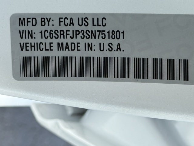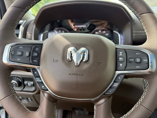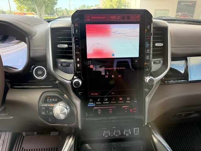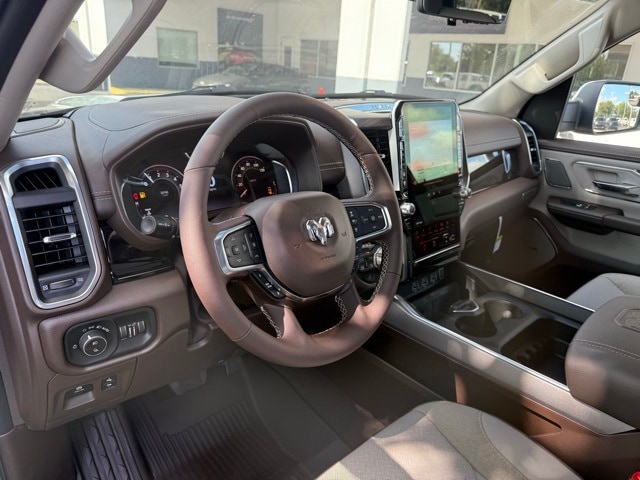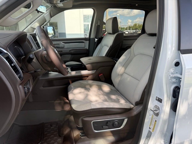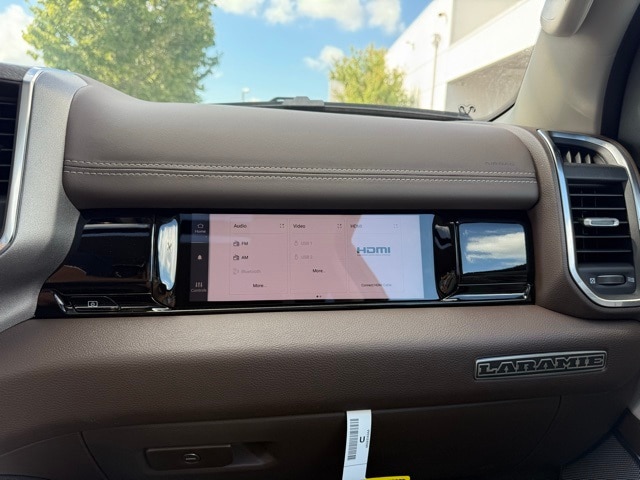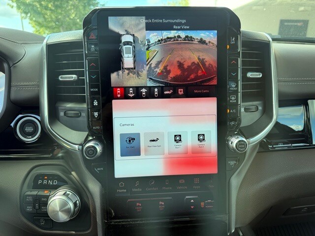 This 1500 is well equipped with Advanced Safety Group II (12-Way/1-Way Trailer Connector, Active Driving Assist System, Drowsy Driver Detection, Evasive Steer Assist, Exterior Mirrors Approach Lamps, Intersection Collision Assist System, Surround View Camera System, and Traffic Sign Recognition), Laramie Level 2 Equipment Group (14.4" Touchscreen Display, 4G LTE Wi-Fi Hot Spot, Apple CarPlay, Cluster 12" TFT Color Display, Connected Travel & Traffic Services, Connectivity - US/Canada, Google Android Auto, GPS Antenna Input, GPS Navigation, harman/kardon 19 Speaker Premium Sound, HD Radio, Integrated Voice Command w/Bluetooth, Power Tailgate, Radio: Uconnect 5 Nav w/14.4" Display, Rain Sensitive Windshield Wipers, SiriusXM w/360L, and USB Host Flip), Quick Order Package 21H Laramie, Technology Group (Heads-Up Display and LED CHMSL Lamp), 10 Speakers, 3 Rear Seat Head Restraints, 3.55 Rear Axle Ratio, 33 Gallon Fuel Tank, 4 Way Front Headrests, 4-Corner Air Suspension, 4-Wheel Disc Brakes, ABS brakes, Air Conditioning, Alloy wheels, AM/FM radio: SiriusXM with 360L, Apple CarPlay/Android Auto, Audio memory, Auto High-beam Headlights, Auto Power-Folding Mirrors, Auto-dimming door mirrors, Auto-Dimming Exterior Driver Mirror, Auto-dimming Rear-View mirror, Automatic temperature control, Brake assist, Bumpers: chrome, Chrome Exterior Mirrors, Compass, Convex Wide-Angle Exterior Mirror Insert, Delay-off headlights, Dome Dual LED Reading Lamp, Driver door bin, Driver Seat Memory, Driver vanity mirror, Dual front impact airbags, Dual front side impact airbags, Dual-Pane Panoramic Sunroof, Electronic Stability Control, Exterior Mirrors Courtesy Lamps, Exterior Mirrors w/Heating Element, Exterior Mirrors w/Memory, Exterior Mirrors w/Supplemental Signals, Front anti-roll bar, Front Center Armrest w/Storage, Front dual zone A/C, Front fog lights, Front reading lights, Front Seat Back Map Pockets, Front wheel independent suspension, Fully automatic headlights, Garage door transmitter, Heated door mirrors, Heated Front Seats, Heated front seats, Heated rear seats, Heated Steering Wheel, Heated steering wheel, Illuminated entry, Leather steering wheel, Leather Trim 40/20/40 Bench Seat, LED Dome/Reading Lamp, Low tire pressure warning, Manufacturer's Statement of Origin, Memory seat, MOPAR Front & Rear Rubber Floor Mats, Navigation System, Occupant sensing airbag, Outside temperature display, Overhead airbag, Overhead console, Panic alarm, ParkView Rear Back-Up Camera, Passenger door bin, Passenger vanity mirror, Power 2-Way Driver Lumbar Adjust, Power 2-Way Passenger Lumbar Adjust, Power Adjust 8-Way Front Passenger Seat, Power door mirrors, Power driver seat, Power passenger seat, Power steering, Power windows, Radio data system, Radio: Uconnect 5 Nav w/12.0" Display, RAM Grille Badge - Chrome, Rear anti-roll bar, Rear reading lights, Rear seat center armrest, Rear step bumper, Remote keyless entry, Security system, Speed control, Split folding rear seat, Steering wheel mounted audio controls, Tachometer, Telescoping steering wheel, Tilt steering wheel, Traction control, Trip computer, Turn signal indicator mirrors, Variably intermittent wipers, Ventilated Front Seats, Ventilated front seats, Voltmeter, and Wheels: 20" x 9" Premium Paint/Polish.