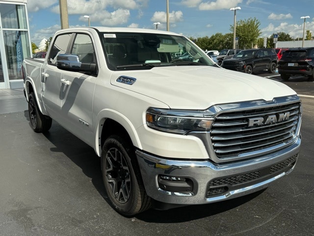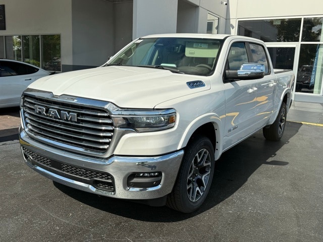 Ivory White Tri-Coat Pearlcoat 2025 Ram 1500 4D Crew Cab Laramie 4WD 8-Speed Automatic 3.0L I6