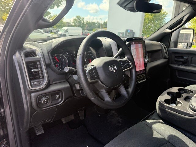 This 2500 is well equipped with Cold Weather Group (Engine Block Heater and MOPAR Winter Front Grille Cover), Quick Order Package 24A Tradesman, Towing Technology Group (Auto Power-Folding Mirrors, Black Exterior Mirrors, Blind Spot & Cross Path Detection, CTR Stop Lamp w/Cargo View Camera, Exterior Mirrors Courtesy Lamps, Exterior Mirrors w/Heating Element, Exterior Mirrors w/Supplemental Signals, Forward & Reverse Utility Lights, LED Tail Lamps, Mirror Running Lights, Power Adjust Mirrors, Power Adjustable Convex Aux Mirrors, Power Heated Folding Telescopic Mirrors, Power Telescoping Mirrors, Red Tail Lamp Bezels, Surround View Camera System, Trailer Reverse Guidance, and Trailer Tire Pressure Monitoring System), Tradesman Level 2 Equipment Group (115V Auxiliary Front Power Outlet, 12" Touchscreen Display, 2 Way Rear Headrest Seat, 4 Way Front Headrests, 40/20/40 Split Bench Seat, 400W Inverter, 4G LTE Wi-Fi Hot Spot, Air Conditioning ATC w/Dual Zone Control, Alexa Built-In, Anti-Spin Differential Rear Axle, Apple CarPlay, Auto-Dimming Rear-View Mirror, Bright Front Bumper, Bright Rear Bumper, Carpet Floor Covering, Center Hub, Chrome Grille Surround, Cloth 40/20/40 Bench Seat, Connected Travel & Traffic Services, Connectivity - US/Canada, Disassociated Touchscreen Display, Emergency Vehicle Alert System (EVAS), Exterior 115V AC Outlet, Front & Rear Floor Mats, Front Armrest w/Cupholders, Global Telematics Box Module (TBM), Google Android Auto, GPS Antenna Input, GPS Navigation, HD Radio, Integrated Voice Command w/Bluetooth, Manual Adjust 4-Way Driver Seat, Manual Adjust 4-Way Front Passenger Seat, Manual Folding Exterior Mirrors, Manual Telescoping Mirrors, Matte Black Mesh Grille w/Chrome, Mopar Black Tubular Side Steps, Off-Road Info Pages, ParkSense Front/Rear Park Assist System, Power Heated Folding Telescope Mirrors, Radio: Uconnect 5 Nav w/12.0" Display, Rear Folding Seat, Rear Power Sliding Window, Remote USB Port - Charge Only, Selectable Tire Fill Alert, SiriusXM Radio Service, SiriusXM w/360L, Storage Tray, Tinted Acoustic Windshield Glass, Trailer Tow Pages, and Wheels: 18" x 8.0" Steel Chrome Clad), 4-Wheel Disc Brakes, 6 Speakers, ABS brakes, Air Conditioning, AM/FM radio: SiriusXM, Apple CarPlay/Android Auto, Black Wheel Center Hub, Brake assist, Compass, Dash Pass Thru Wire Circuits, Delay-off headlights, Driver door bin, Dual front impact airbags, Dual front side impact airbags, Electronic Stability Control, Front anti-roll bar, Front Center Armrest w/Storage, Front fog lights, Front reading lights, Fully automatic headlights, Heavy Duty Vinyl 40/20/40 Split Bench Seat, I/P Mounted Auxiliary Switches, Illuminated entry, Low tire pressure warning, Manufacturer's Statement of Origin, Occupant sensing airbag, Outside temperature display, Overhead airbag, Overhead console, Panic alarm, ParkView Rear Back-Up Camera, Passenger door bin, Passenger vanity mirror, Power steering, Power windows, Radio data system, Radio: Uconnect 5 w/8.4" Display, Rear anti-roll bar, Rear step bumper, Rear window defroster, Remote keyless entry, Speed control, Tachometer, Tilt steering wheel, Traction control, Variably intermittent wipers, Voltmeter, and Wheels: 17" x 7.5" Black Steel Styled.