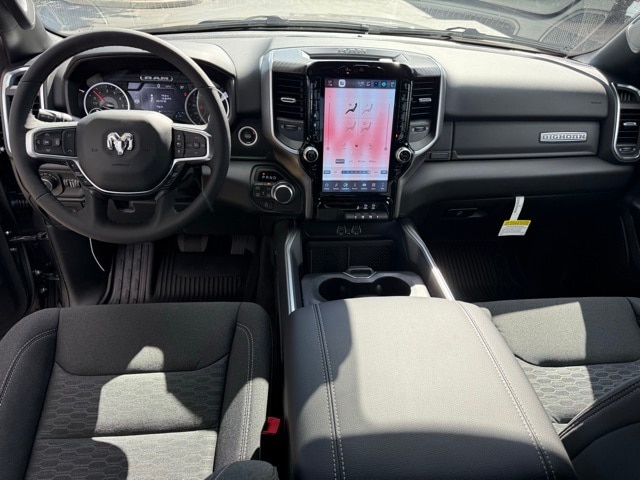This 1500 is well equipped with Big Horn Level 2 Equipment Group (115V Auxiliary Power Outlet, 115V Auxiliary Rear Power Outlet, 12" Touchscreen Display, 2nd Row in Floor Storage Bins, 3 Rear Seat Head Restraints, 4 Way Front Headrests, 400W Inverter, 4G LTE Wi-Fi Hot Spot, 9 Amplified Speakers with Subwoofer, Air Conditioning ATC with Dual Zone Control, Apple CarPlay, Auto Power-Folding Mirrors, Auto-Dimming Exterior Driver Mirror, Auto-Dimming Rear-View Mirror, Black Exterior Mirrors, Black Premium Power Mirrors, Body Color Fender Flares, Bucket Seats, Center Console Parts Module, Cluster 7.0" TFT Color Display, Configurable Drive Mode, Connected Travel and Traffic Services, Connectivity - US/Canada, Convex Wide-Angle Exterior Mirror Insert, Deluxe Cloth Bucket Seats, Disassociated Touchscreen Display, Exterior Mirrors Courtesy Lamps, Exterior Mirrors with Heating Element, Exterior Mirrors with Supplemental Signals, Front Seat Back Map Pockets, Full Length Floor Console, Global Telematics Box Module, Glove Box Lamp, Google Android Auto, GPS Antenna Input, GPS Navigation, HD Radio, Heated Front Seats, Heated Steering Wheel, Integrated Center Stack Radio, Integrated Voice Command with Bluetooth, Leather Wrapped Steering Wheel, LED Dome Lamp with on/Off Switch, LED Footwell Lighting, Manual Adjust 4-Way Front Passenger Seat, Media Hub with 2 Charge Only USBs, Overhead LED Lamps, Power 2-Way Driver Lumbar Adjust, Power Adjust 8-Way Driver Seat, Power Adjustable Pedals, Premium Overhead Console, Radio: Uconnect 5 Navigation with 12.0" Display, Rear 60/40 Folding Seat, Rear Center Armrest, Rear Power Sliding Window, Rear Window Defroster, Remote Tailgate Release, Security Alarm, SiriusXM Radio Service, SiriusXM with 360L, Steering Wheel Mounted Audio Controls, Sun Visors with Illuminated Vanity Mirrors, Universal Garage Door Opener, and USB Host Flip), Night Edition (Accent Color Door Handles, Accent Color Premium Power Mirrors, Accent Color Tailgate Handle, Anti-Spin Differential Rear Axle, Black Exterior Truck Badging, Black Headlamp Bezels, Black Interior Accents, Black Painted Exterior Mirrors Caps, Black Tail Lamp Bezels, Body Color Front Bumper, Body Color Rear Bumper with Step Pads, Dual Exhaust with Black Tips, Grille Black Surround Black Mesh, RAM Grille Badge - Black, and Wheels: 20" x 9.0" Aluminum Painted Clad), Quick Order Package 27Z Big Horn, 4-Wheel Disc Brakes, 48V Belt Starter Generator, 6 Speakers, ABS brakes, Air Conditioning, Alloy wheels, AM/FM radio, Apple CarPlay/Android Auto, Auto High-beam Headlights, Brake assist, Bumpers: chrome, Cloth Bucket Seats, Compass, Delay-off headlights, Driver door bin, Dual front impact airbags, Dual front side impact airbags, Electronic Stability Control, Front anti-roll bar, Front Bucket Seats, Front Center Armrest w/Storage, Front fog lights, Front reading lights, Front wheel independent suspension, Fully automatic headlights, Heated door mirrors, Illuminated entry, Low tire pressure warning, Manual Adjust 4-Way Driver Seat, Manual Folding Exterior Mirrors, Manufacturer's Statement of Origin, MOPAR Front and Rear Rubb Not all customers qualify for all rebates. See dealer for details. Price includes: $1000 - 2026 South BC Retail Bonus Cash . Exp. 01/05/2026 $1000 - 2026 South BC Retail Bonus Cash . Exp. 01/05/2026 $3500 - 2026 National Retail Consumer Cash . Exp