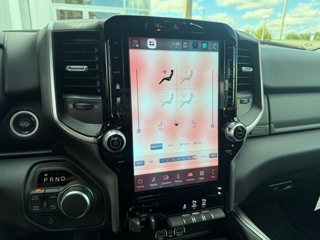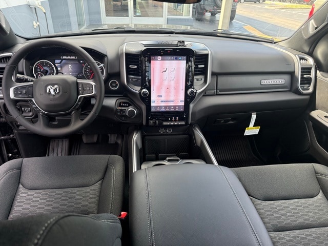 This 1500 is well equipped with Big Horn Level 2 Equipment Group (115V Auxiliary Power Outlet, 115V Auxiliary Rear Power Outlet, 12" Touchscreen Display, 2nd Row In Floor Storage Bins, 3 Rear Seat Head Restraints, 4 Way Front Headrests, 400W Inverter, 4G LTE Wi-Fi Hot Spot, 9 Amplified Speakers w/Subwoofer, Air Conditioning ATC w/Dual Zone Control, Apple CarPlay, Auto Power-Folding Mirrors, Auto-Dimming Exterior Driver Mirror, Auto-Dimming Rear-View Mirror, Black Exterior Mirrors, Black Premium Power Mirrors, Body Color Fender Flares, Bucket Seats, Center Console Parts Module, Cluster 7.0" TFT Color Display, Configurable Drive Mode, Connected Travel & Traffic Services, Connectivity - US/Canada, Convex Wide-Angle Exterior Mirror Insert, Deluxe Cloth Bucket Seats, Disassociated Touchscreen Display, Exterior Mirrors Courtesy Lamps, Exterior Mirrors w/Heating Element, Exterior Mirrors w/Supplemental Signals, Front Seat Back Map Pockets, Full Length Floor Console, Global Telematics Box Module (TBM), Glove Box Lamp, Google Android Auto, GPS Antenna Input, GPS Navigation, HD Radio, Heated Front Seats, Heated Steering Wheel, Integrated Center Stack Radio, Integrated Voice Command w/Bluetooth, Leather Wrapped Steering Wheel, LED Dome Lamp w/On/Off Switch, LED Footwell Lighting, Manual Adjust 4-Way Front Passenger Seat, Media Hub w/2 Charge Only USBs, Overhead LED Lamps, Power 2-Way Driver Lumbar Adjust, Power Adjust 8-Way Driver Seat, Power Adjustable Pedals, Premium Overhead Console, Radio: Uconnect 5 Nav w/12.0" Display, Rear 60/40 Folding Seat, Rear Center Armrest, Rear Power Sliding Window, Rear Window Defroster, Remote Tailgate Release, Security Alarm, SiriusXM Radio Service, SiriusXM w/360L, Steering Wheel Mounted Audio Controls, Sun Visors w/Illuminated Vanity Mirrors, Universal Garage Door Opener, USB Host Flip, and Wheels: 20" x 9" Aluminum Chrome Clad (WRK)), Quick Order Package 27Z Big Horn, Sport Appearance Package (Black Interior Accents, Body Color Door Handles, Body Color Front Bumper, Body Color Rear Bumper w/Step Pads, Body Color Tailgate Handle, Grille Surround 1 Body Color Texture 1 Black, and RAM Grille Badge - Chrome), 33 Gallon Fuel Tank, 4-Wheel Disc Brakes, 48V Belt Starter Generator, 6 Speakers, ABS brakes, Air Conditioning, Alloy wheels, AM/FM radio, Apple CarPlay/Android Auto, Auto High-beam Headlights, Brake assist, Bumpers: chrome, Cloth Bucket Seats, Compass, Delay-off headlights, Driver door bin, Dual front impact airbags, Dual front side impact airbags, Electronic Stability Control, Front anti-roll bar, Front Bucket Seats, Front Center Armrest w/Storage, Front fog lights, Front reading lights, Front wheel independent suspension, Fully automatic headlights, Heated door mirrors, Illuminated entry, Low tire pressure warning, Manual Adjust 4-Way Driver Seat, Manual Folding Exterior Mirrors, Manufacturer's Statement of Origin, MOPAR Front & Rear Rubber Floor Mats, MyFlexCare Service Plan, Occupant sensing airbag, Outside temperature display, Overhead airbag, Overhead console, Panic alarm, ParkView Rear Back-Up Camera, Passenger door bin, Passenger vanity mirror, Power door mirrors, Power steering, Power windows, R Not all customers qualify for all rebates. See dealer for details. Price includes: $1000 - 2026 South BC Retail Bonus Cash . Exp. 11/03/2025 $3500 - 2026 National Retail Consumer Cash . Exp