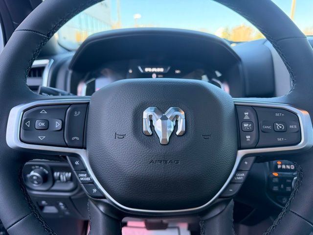 This 1500 is well equipped with Bed Utility Group (Exterior 115V AC Outlet, MOPAR 4 Adjustable Cargo Tie-Down Hooks, MOPAR Spray in Bedliner, and Pick-Up Box Lighting), Big Horn Level 2 Equipment Group (115V Auxiliary Power Outlet, 115V Auxiliary Rear Power Outlet, 12" Touchscreen Display, 2nd Row in Floor Storage Bins, 3 Rear Seat Head Restraints, 4 Way Front Headrests, 400W Inverter, 4G LTE Wi-Fi Hot Spot, 9 Amplified Speakers with Subwoofer, Air Conditioning ATC with Dual Zone Control, Apple CarPlay, Auto Power-Folding Mirrors, Auto-Dimming Exterior Driver Mirror, Auto-Dimming Rear-View Mirror, Black Exterior Mirrors, Black Premium Power Mirrors, Body Color Fender Flares, Bucket Seats, Center Console Parts Module, Cluster 7.0" TFT Color Display, Configurable Drive Mode, Connected Travel and Traffic Services, Connectivity - US/Canada, Convex Wide-Angle Exterior Mirror Insert, Deluxe Cloth Bucket Seats, Disassociated Touchscreen Display, Exterior Mirrors Courtesy Lamps, Exterior Mirrors with Heating Element, Exterior Mirrors with Supplemental Signals, Front Seat Back Map Pockets, Full Length Floor Console, Global Telematics Box Module, Glove Box Lamp, Google Android Auto, GPS Antenna Input, GPS Navigation, HD Radio, Heated Front Seats, Heated Steering Wheel, Integrated Center Stack Radio, Integrated Voice Command with Bluetooth, Leather Wrapped Steering Wheel, LED Dome Lamp with on/Off Switch, LED Footwell Lighting, Manual Adjust 4-Way Front Passenger Seat, Media Hub with 2 Charge Only USBs, Overhead LED Lamps, Power 2-Way Driver Lumbar Adjust, Power Adjust 8-Way Driver Seat, Power Adjustable Pedals, Premium Overhead Console, Radio: Uconnect 5 Navigation with 12.0" Display, Rear 60/40 Folding Seat, Rear Center Armrest, Rear Power Sliding Window, Rear Window Defroster, Remote Tailgate Release, Security Alarm, SiriusXM Radio Service, SiriusXM with 360L, Steering Wheel Mounted Audio Controls, Sun Visors with Illuminated Vanity Mirrors, Universal Garage Door Opener, and USB Host Flip), Protection Group (Tow Hooks), Quick Order Package 21Z Big Horn, Quick Order Package 23Z Big Horn, Sport Appearance Package (Black Interior Accents, Body Color Door Handles, Body Color Front Bumper, Body Color Rear Bumper with Step Pads, Body Color Tailgate Handle, Grille Surround 1 Body Color Texture 1 Black, and RAM Grille Badge - Chrome), 33 Gallon Fuel Tank, 4-Wheel Disc Brakes, 48V Belt Starter Generator, 6 Speakers, ABS brakes, Air Conditioning, Alloy wheels, AM/FM radio, Anti-Spin Differential Rear Axle, Apple CarPlay/Android Auto, Auto High-beam Headlights, Brake assist, Bumpers: chrome, Cloth Bucket Seats, Cluster 12" TFT Color Display, Compass, Delay-off headlights, Dome Dual LED Reading Lamp, Driver door bin, Dual front impact airbags, Dual front side impact airbags, Dual-Pane Panoramic Sunroof, Electronic Stability Control, Front anti-roll bar, Front Bucket Seats, Front Center Armrest w/Storage, Front fog lights, Front License Plate Bracket, Front reading lights, Front wheel independent suspension, Fully automatic headlights, Heated door mirrors, Illuminated entry, Low tire pressure warning, Manual Adjust 4-Way Driver Seat, Manual Folding Exterior Mirrors, Manufacturer's S Not all customers qualify for all rebates. See dealer for details. Price includes: $3500 - 2026 National Retail Bonus Cash . Exp. 03/31/2026 $500 - 2026 National 2026 Military Bonus Cash . Exp