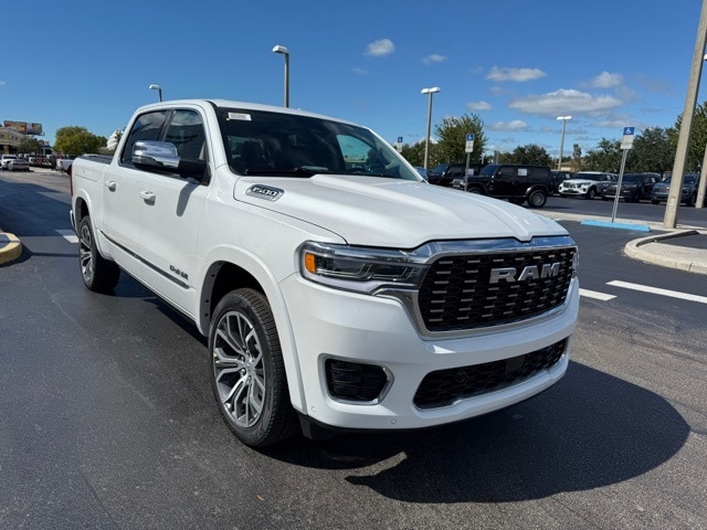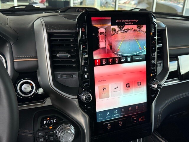 This 1500 is well equipped with Quick Order Package 22V Tungsten, 12-Way/1-Way Trailer Connector, 3.92 Rear Axle Ratio, 4-Wheel Disc Brakes, ABS brakes, Adjustable pedals, Air Conditioning, Alloy wheels, AM/FM radio, Apple CarPlay/Android Auto, Audio memory, Auto High-beam Headlights, Auto Power-Folding Mirrors, Auto-dimming door mirrors, Auto-Dimming Exterior Driver Mirror, Auto-dimming Rear-View mirror, Auto-leveling suspension, Automatic temperature control, Bodyside moldings, Brake assist, Bumpers: body-color, Chrome Exterior Mirrors, Compass, Delay-off headlights, Driver door bin, Driver vanity mirror, Dual front impact airbags, Dual front side impact airbags, Electronic Stability Control, Exterior Mirrors Courtesy Lamps, Exterior Mirrors w/Heating Element, Exterior Mirrors w/Memory, Exterior Mirrors w/Supplemental Signals, Exterior Parking Camera Rear, Front anti-roll bar, Front Bucket Seats, Front Center Armrest w/Storage, Front dual zone A/C, Front fog lights, Front reading lights, Front wheel independent suspension, Fully automatic headlights, Garage door transmitter, Heads-Up Display, Heated door mirrors, Heated front seats, Heated rear seats, Heated steering wheel, Illuminated entry, Leather steering wheel, Low tire pressure warning, Manufacturer's Statement of Origin, Memory seat, MyFlexCare Service Plan, Navigation System, Occupant sensing airbag, Outside temperature display, Overhead airbag, Overhead console, Panic alarm, Passenger door bin, Passenger vanity mirror, Pedal memory, Power adjustable front head restraints, Power door mirrors, Power driver seat, Power moonroof, Power passenger seat, Power steering, Power windows, Premium Leather Bucket Seats, Radio data system, Radio: Uconnect 5 Nav w/14.4" Display, Rain sensing wipers, Rear anti-roll bar, Rear reading lights, Rear seat center armrest, Rear step bumper, Rear window defroster, Remote keyless entry, Security system, Speed control, Split folding rear seat, Steering wheel mounted audio controls, Tachometer, Telescoping steering wheel, Tilt steering wheel, Traction control, Trip computer, Turn signal indicator mirrors, Variably intermittent wipers, Ventilated front seats, Ventilated rear seats, Voltmeter, and Wheels: 22" x 9" Polish/Painted w/Inserts. Not all customers qualify for all rebates. See dealer for details. Price includes: $1000 - 2026 National Retail Consumer Cash . Exp. 11/03/2025