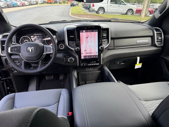 This 1500 is well equipped with Big Horn Level 2 Equipment Group (115V Auxiliary Power Outlet, 115V Auxiliary Rear Power Outlet, 12" Touchscreen Display, 2nd Row in Floor Storage Bins, 3 Rear Seat Head Restraints, 4 Way Front Headrests, 400W Inverter, 4G LTE Wi-Fi Hot Spot, 9 Amplified Speakers with Subwoofer, Air Conditioning ATC with Dual Zone Control, Apple CarPlay, Auto Power-Folding Mirrors, Auto-Dimming Exterior Driver Mirror, Auto-Dimming Rear-View Mirror, Black Exterior Mirrors, Black Premium Power Mirrors, Body Color Fender Flares, Bucket Seats, Center Console Parts Module, Cluster 7.0" TFT Color Display, Configurable Drive Mode, Connected Travel and Traffic Services, Connectivity - US/Canada, Convex Wide-Angle Exterior Mirror Insert, Deluxe Cloth Bucket Seats, Disassociated Touchscreen Display, Exterior Mirrors Courtesy Lamps, Exterior Mirrors with Heating Element, Exterior Mirrors with Supplemental Signals, Front Seat Back Map Pockets, Full Length Floor Console, Global Telematics Box Module, Glove Box Lamp, Google Android Auto, GPS Antenna Input, GPS Navigation, HD Radio, Heated Front Seats, Heated Steering Wheel, Integrated Center Stack Radio, Integrated Voice Command with Bluetooth, Leather Wrapped Steering Wheel, LED Dome Lamp with on/Off Switch, LED Footwell Lighting, Manual Adjust 4-Way Front Passenger Seat, Media Hub with 2 Charge Only USBs, Overhead LED Lamps, Power 2-Way Driver Lumbar Adjust, Power Adjust 8-Way Driver Seat, Power Adjustable Pedals, Premium Overhead Console, Radio: Uconnect 5 Navigation with 12.0" Display, Rear 60/40 Folding Seat, Rear Center Armrest, Rear Power Sliding Window, Rear Window Defroster, Remote Tailgate Release, Security Alarm, SiriusXM Radio Service, SiriusXM with 360L, Steering Wheel Mounted Audio Controls, Sun Visors with Illuminated Vanity Mirrors, Universal Garage Door Opener, and USB Host Flip), Quick Order Package 23Z Big Horn, Quick Order Package 27Z Big Horn, 33 Gallon Fuel Tank, 4-Wheel Disc Brakes, 48V Belt Starter Generator, 6 Speakers, ABS brakes, Air Conditioning, Alloy wheels, AM/FM radio, Apple CarPlay/Android Auto, Auto High-beam Headlights, Brake assist, Bumpers: chrome, Cloth Bucket Seats, Compass, Delay-off headlights, Driver door bin, Dual front impact airbags, Dual front side impact airbags, Electronic Stability Control, Front anti-roll bar, Front Bucket Seats, Front Center Armrest w/Storage, Front fog lights, Front reading lights, Front wheel independent suspension, Fully automatic headlights, Heated door mirrors, Illuminated entry, Low tire pressure warning, Manual Adjust 4-Way Driver Seat, Manual Folding Exterior Mirrors, Manufacturer's Statement of Origin, MOPAR Front and Rear Rubber Floor Mats, MyFlexCare Service Plan, Occupant sensing airbag, Outside temperature display, Overhead airbag, Overhead console, Panic alarm, ParkView Rear Back-Up Camera, Passenger door bin, Passenger vanity mirror, Power door mirrors, Power steering, Power windows, Radio data system, Radio: Uconnect 5 W with 8.4" Display, RAM Grille Badge - Chrome, Rear anti-roll bar, Rear step bumper, Rear Underseat Compartment Storage, Rear Wheelhouse Liners, Remote keyless entry, Speed contro Not all customers qualify for all rebates. See dealer for details. Price includes: $3500 - 2026 National Retail Bonus Cash . Exp. 03/31/2026 $500 - 2026 National 2026 Military Bonus Cash . Exp