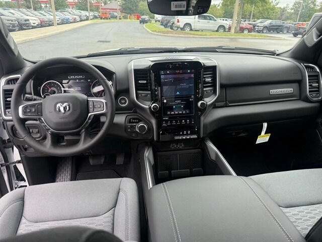 This 1500 is well equipped with Big Horn Level 2 Equipment Group (115V Auxiliary Power Outlet, 115V Auxiliary Rear Power Outlet, 12" Touchscreen Display, 2nd Row In Floor Storage Bins, 3 Rear Seat Head Restraints, 4 Way Front Headrests, 400W Inverter, 4G LTE Wi-Fi Hot Spot, 9 Amplified Speakers w/Subwoofer, Air Conditioning ATC w/Dual Zone Control, Apple CarPlay, Auto Power-Folding Mirrors, Auto-Dimming Exterior Driver Mirror, Auto-Dimming Rear-View Mirror, Black Exterior Mirrors, Black Premium Power Mirrors, Body Color Fender Flares, Bucket Seats, Center Console Parts Module, Cluster 7.0" TFT Color Display, Configurable Drive Mode, Connected Travel & Traffic Services, Connectivity - US/Canada, Convex Wide-Angle Exterior Mirror Insert, Deluxe Cloth Bucket Seats, Disassociated Touchscreen Display, Exterior Mirrors Courtesy Lamps, Exterior Mirrors w/Heating Element, Exterior Mirrors w/Supplemental Signals, Front Seat Back Map Pockets, Full Length Floor Console, Global Telematics Box Module (TBM), Glove Box Lamp, Google Android Auto, GPS Antenna Input, GPS Navigation, HD Radio, Heated Front Seats, Heated Steering Wheel, Integrated Center Stack Radio, Integrated Voice Command w/Bluetooth, Leather Wrapped Steering Wheel, LED Dome Lamp w/On/Off Switch, LED Footwell Lighting, Manual Adjust 4-Way Front Passenger Seat, Media Hub w/2 Charge Only USBs, Overhead LED Lamps, Power 2-Way Driver Lumbar Adjust, Power Adjust 8-Way Driver Seat, Power Adjustable Pedals, Premium Overhead Console, Radio: Uconnect 5 Nav w/12.0" Display, Rear 60/40 Folding Seat, Rear Center Armrest, Rear Power Sliding Window, Rear Window Defroster, Remote Tailgate Release, Security Alarm, SiriusXM Radio Service, SiriusXM w/360L, Steering Wheel Mounted Audio Controls, Sun Visors w/Illuminated Vanity Mirrors, Universal Garage Door Opener, USB Host Flip, and Wheels: 20" x 9" Aluminum Chrome Clad (WRK)), Quick Order Package 21Z Big Horn, 4-Wheel Disc Brakes, 48V Belt Starter Generator, 6 Speakers, ABS brakes, Air Conditioning, Alloy wheels, AM/FM radio, Apple CarPlay/Android Auto, Auto High-beam Headlights, Brake assist, Bumpers: chrome, Cloth Bucket Seats, Compass, Delay-off headlights, Dome Dual LED Reading Lamp, Driver door bin, Dual front impact airbags, Dual front side impact airbags, Dual-Pane Panoramic Sunroof, Electronic Stability Control, Front anti-roll bar, Front Bucket Seats, Front Center Armrest w/Storage, Front fog lights, Front reading lights, Front wheel independent suspension, Fully automatic headlights, Heated door mirrors, Illuminated entry, Low tire pressure warning, Manual Adjust 4-Way Driver Seat, Manual Folding Exterior Mirrors, Manufacturer's Statement of Origin, Occupant sensing airbag, Outside temperature display, Overhead airbag, Overhead console, Panic alarm, ParkView Rear Back-Up Camera, Passenger door bin, Passenger vanity mirror, Power door mirrors, Power steering, Power windows, Radio data system, Radio: Uconnect 5 W w/8.4" Display, RAM Grille Badge - Chrome, Rear anti-roll bar, Rear step bumper, Rear Wheelhouse Liners, Remote keyless entry, Speed control, Supplier Part Tracking (J-1), Tachometer, Telescoping steer Not all customers qualify for all rebates. See dealer for details. Price includes: $1000 - 2026 South BC Retail Bonus Cash . Exp. 12/01/2025 $2000 - 2026 National Holiday Select Inventory Bonus Cash. Exp. 12/01/2025 $3500 - 2026 National Retail Consumer Cash . Exp